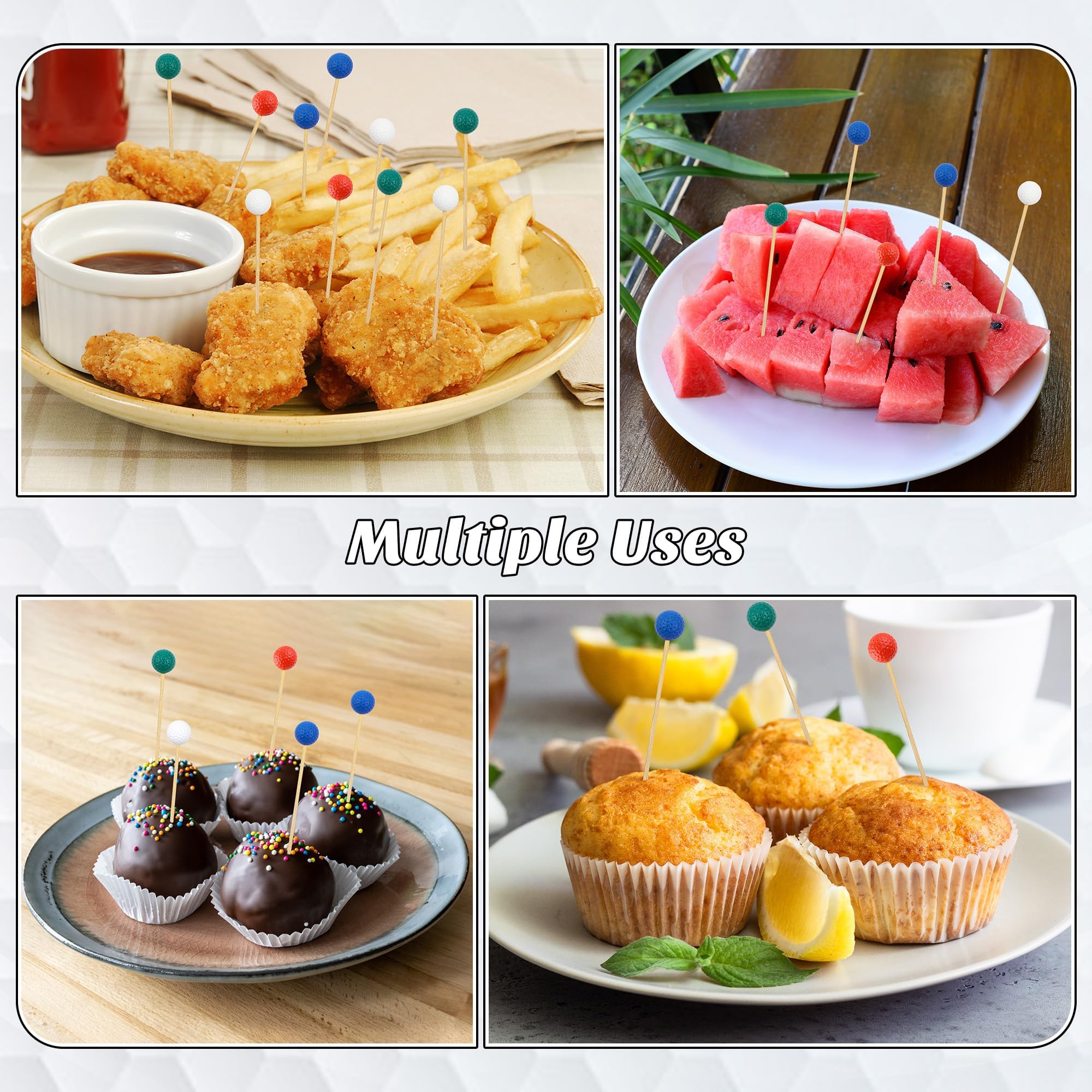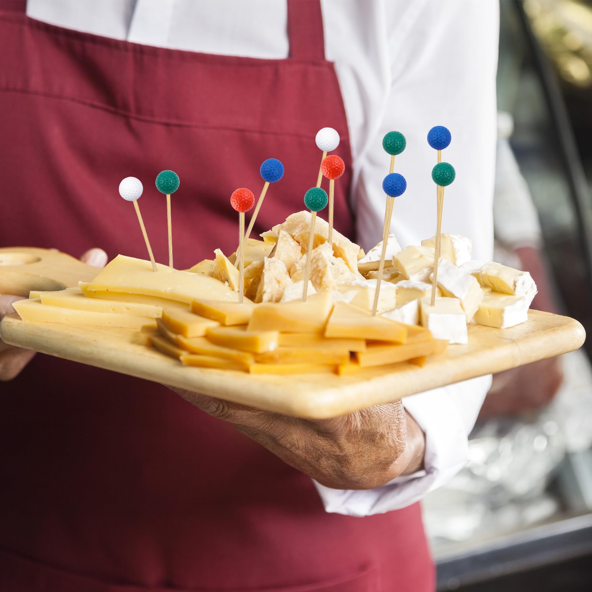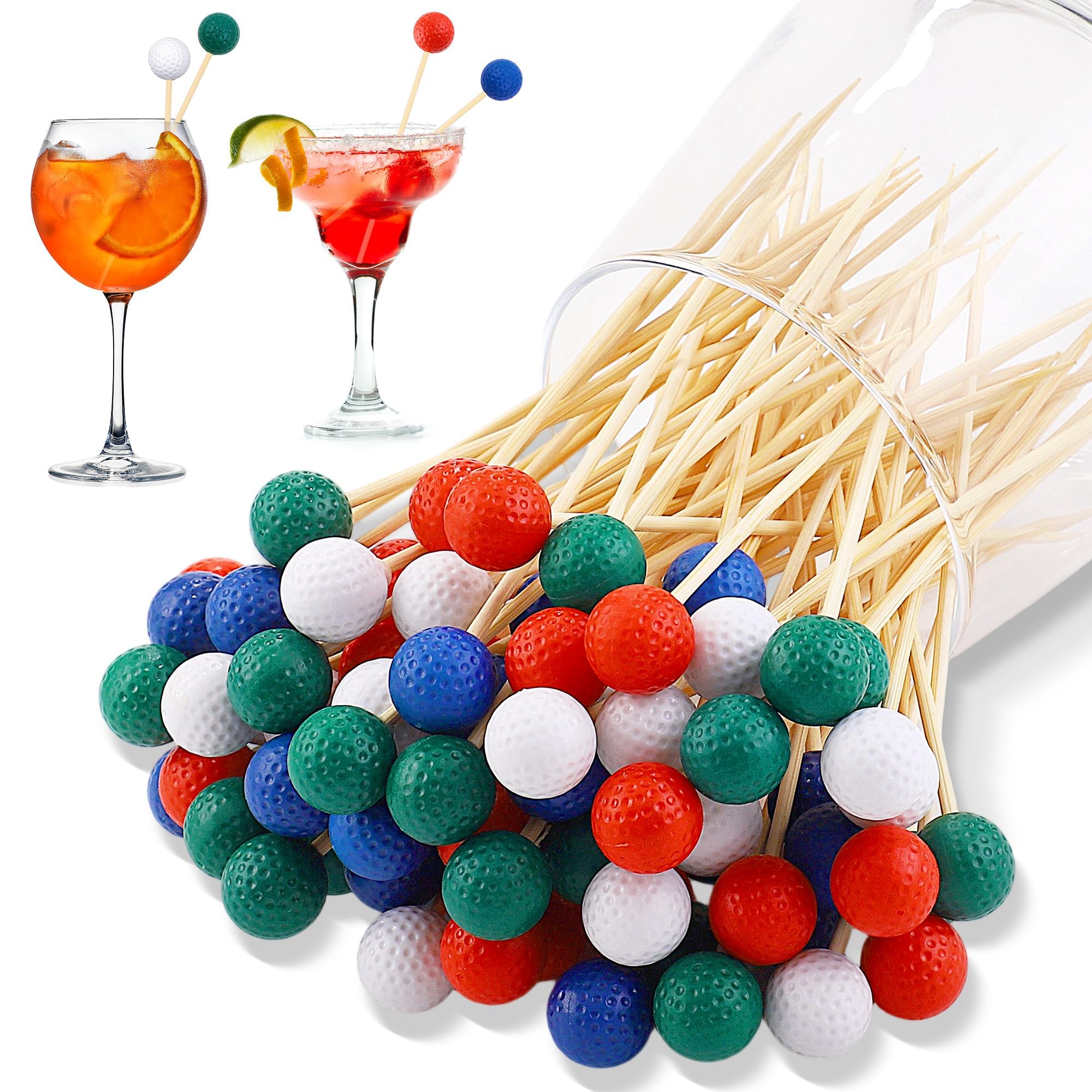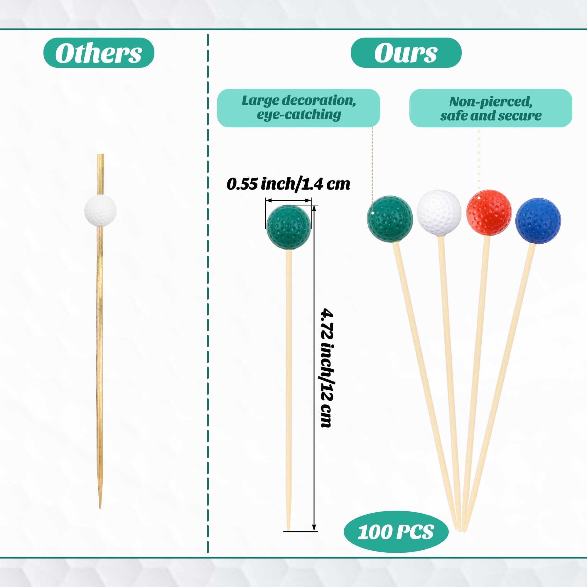 Cute design: you will receive 100 pieces of golf toothpicks, which are sufficient for your daily needs; our golf skewers consist of golf ball decorations in white, red, green, and blue, attached to wooden toothpicks; these colorful toothpicks enhance your golf-themed party and are ideal for cocktails, appetizers, and desserts