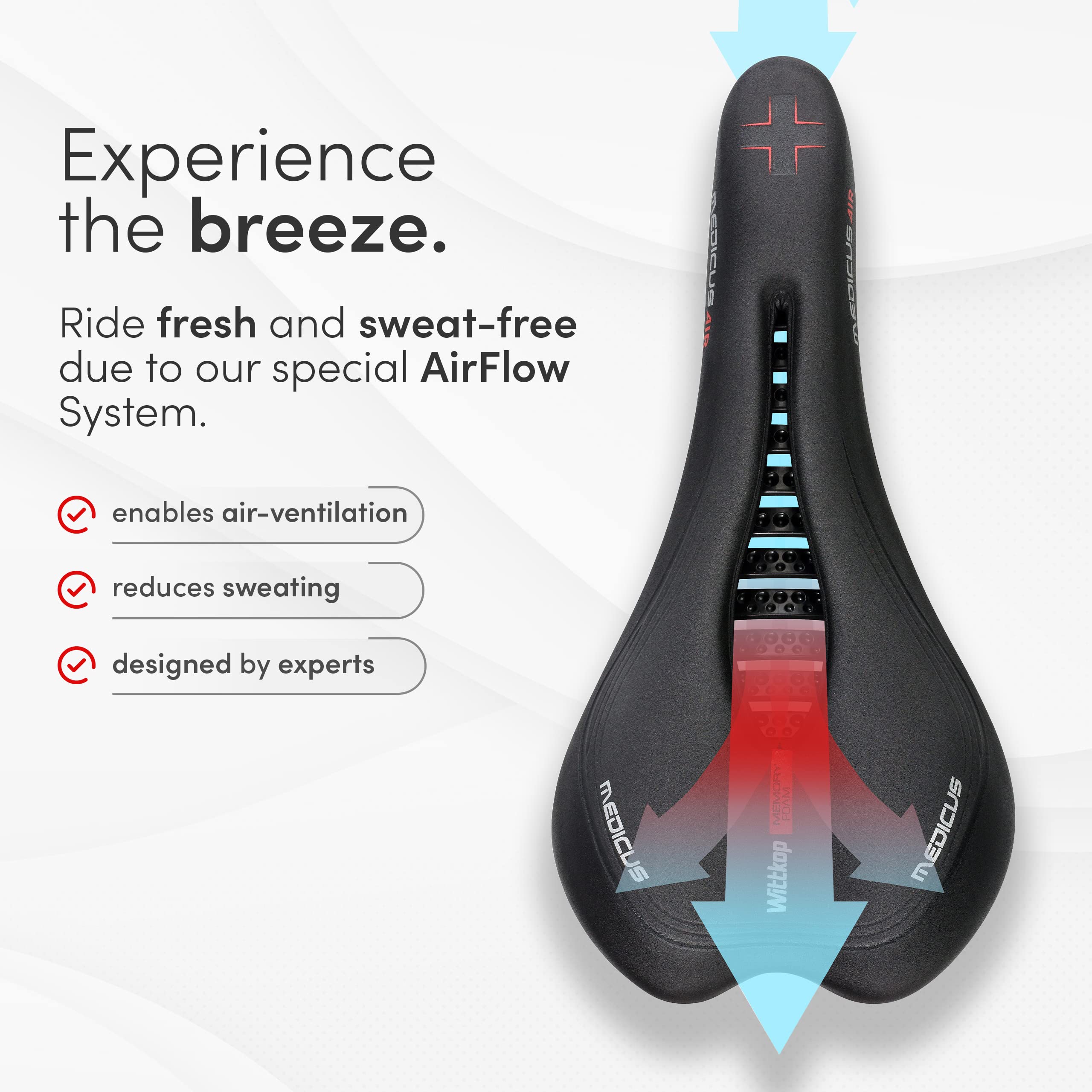 ENHANCED AIRFLOW SYSTEM - The internal braces of the Wittkop saddle for mountain bikes guarantee an innovative air ventilation, so that unpleasant sweating in your intimate areas is a thing of the past!