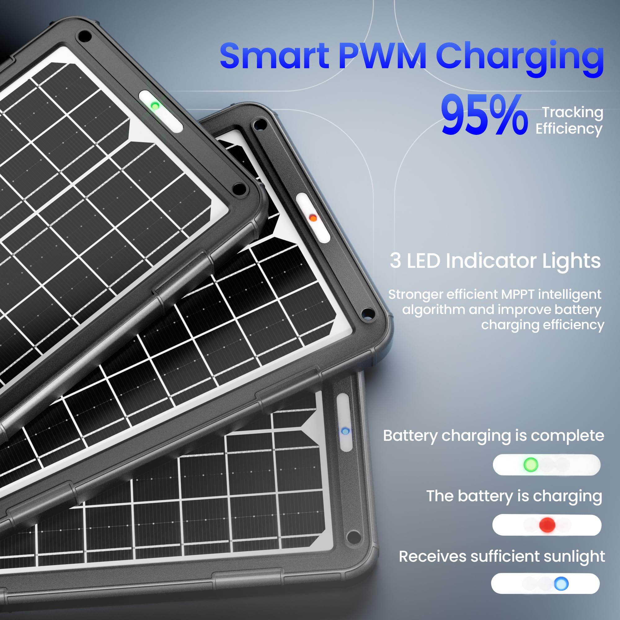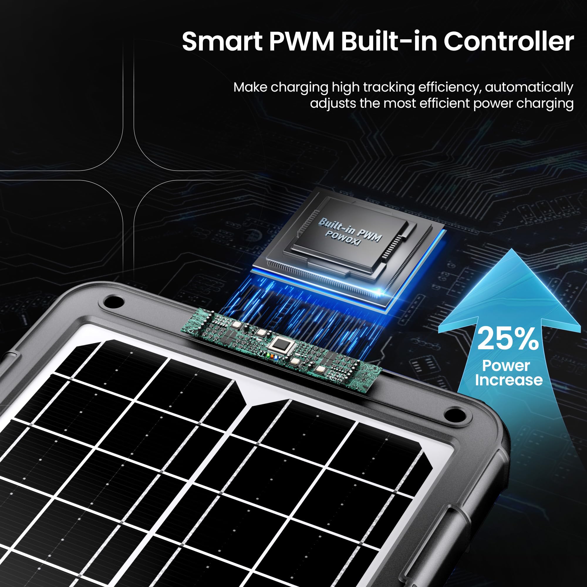 Smart PWM Built-in Controller: Maintains Battery Health with 3-Stage Protection. Automatically adjusts voltage for optimal charging, preventing overcharge & extending battery life. Perfect for long-term maintenance