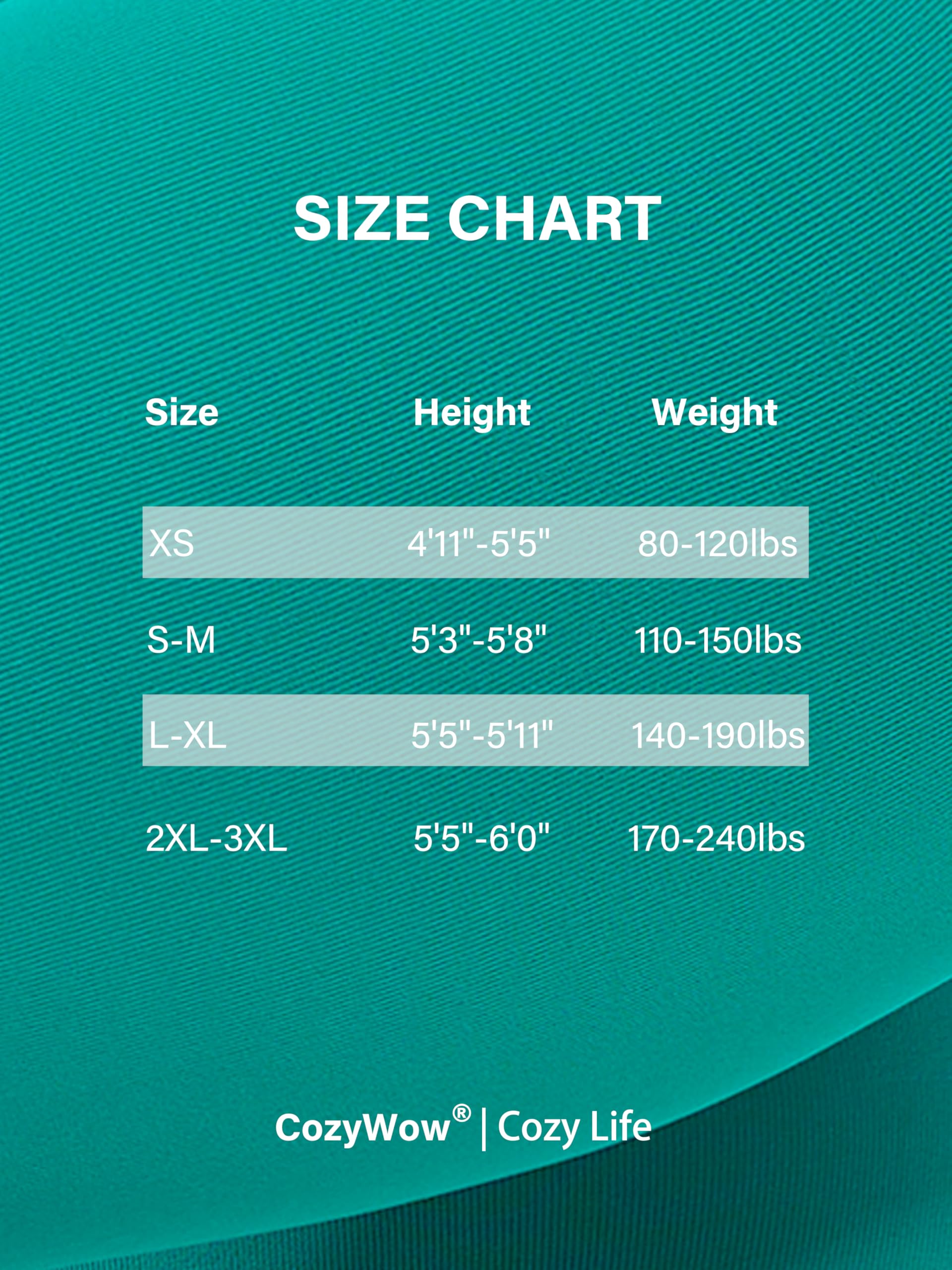 Size Recommended:XS: Height 4'11"-5'5" , Weight 80-120lbs. S-M: Height 5'3"-5'8", Weight 110-150lbs. L-XL: Height 5'5"-5'11", Weight 140-190lbs. 2XL-3XL: Height 5'5"-6', Weight 170-240lbs. Our stockings' design ensure elegance and comfort for every body type.