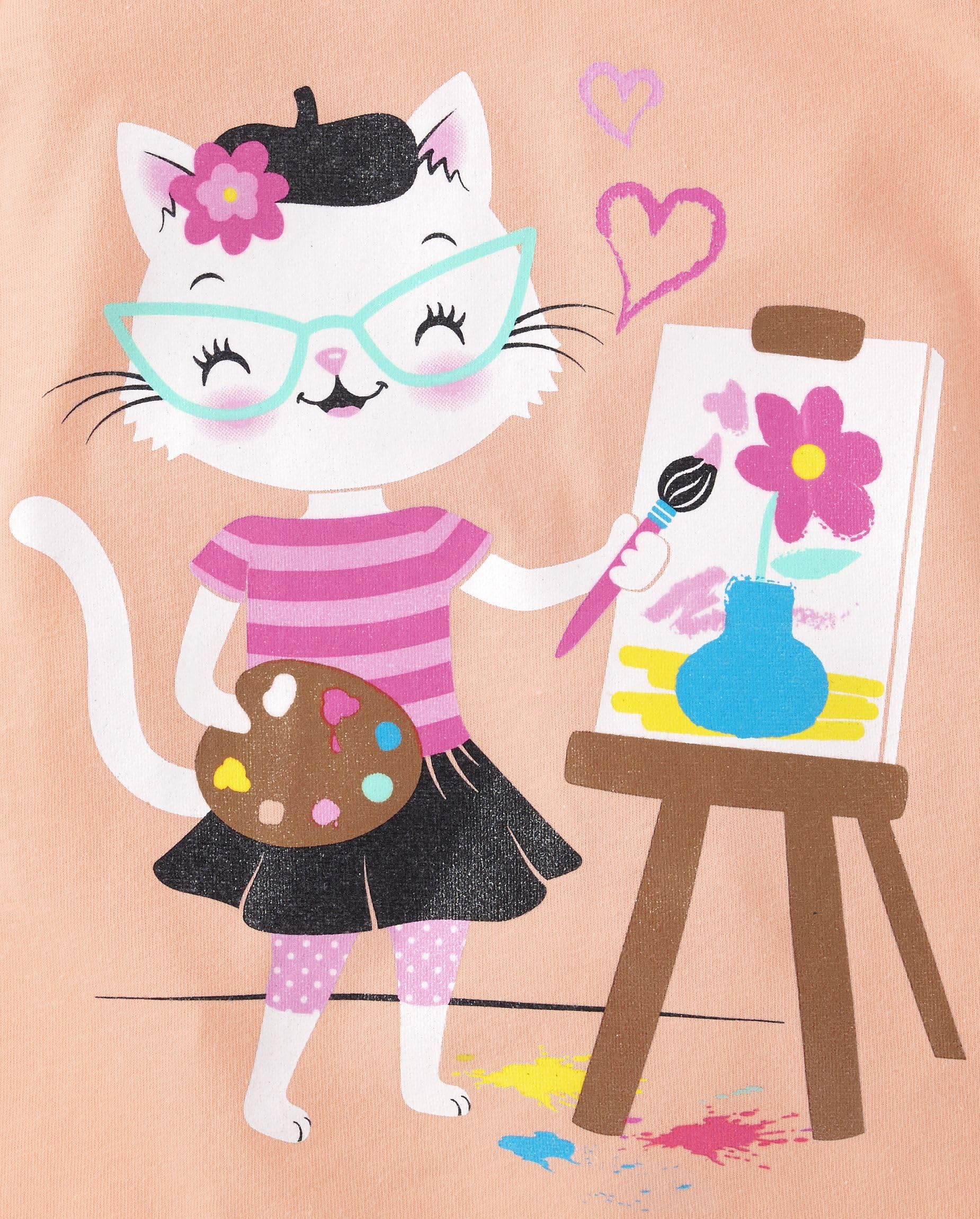 MULTIPACK — 3-pack of graphic tees: 1 cat painting design; 1 giraffe design; 1 bear reading design