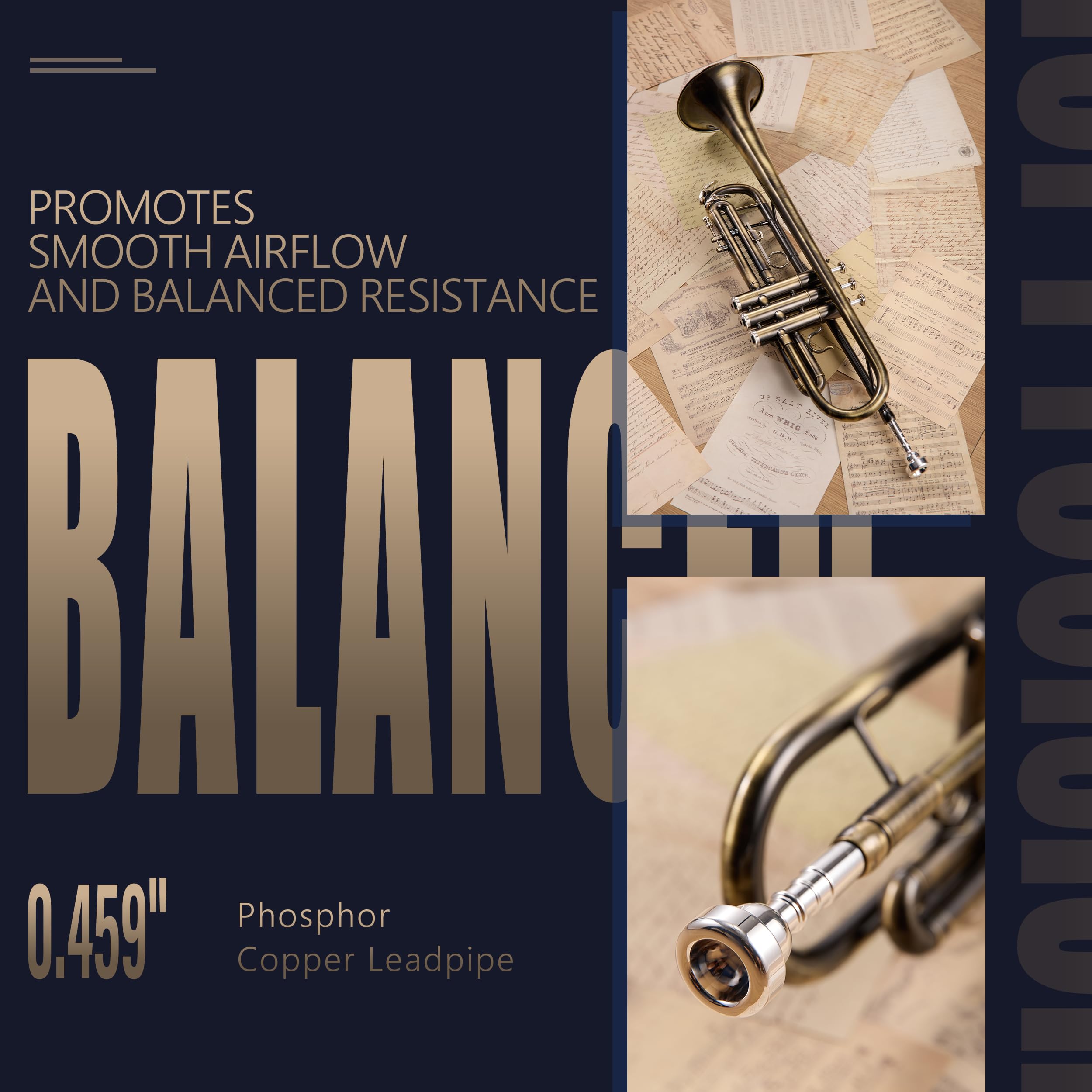 Phosphor Copper Leadpipe — Tone Starts Here: The 0.459" phosphor copper leadpipe enhances smooth airflow and balanced resistance, promoting stable tone production across the entire range of notes. This design ensures cleaner attacks and more defined slotting, with just the right amount of resistance to shape phrasing and articulation with precision.