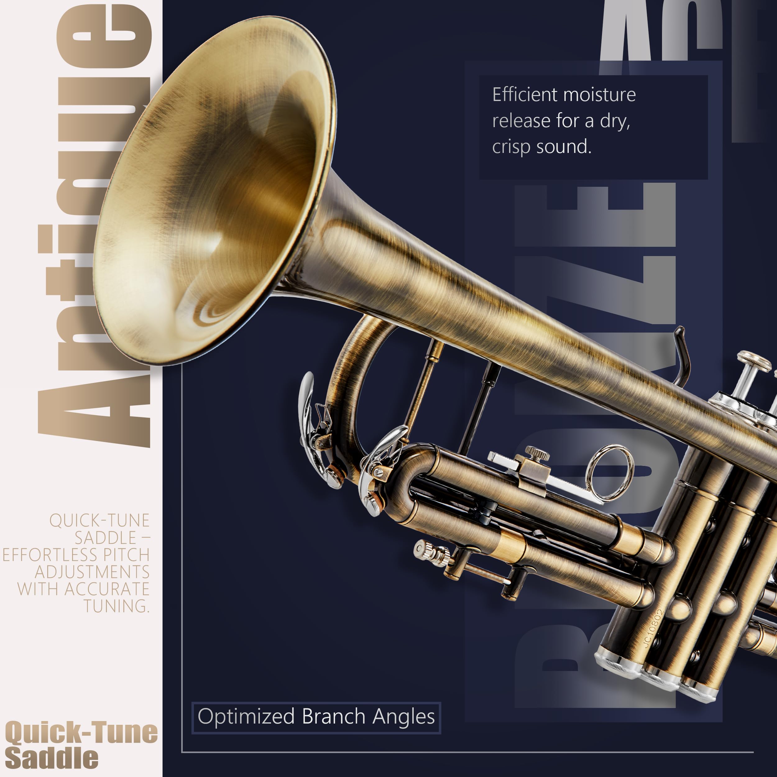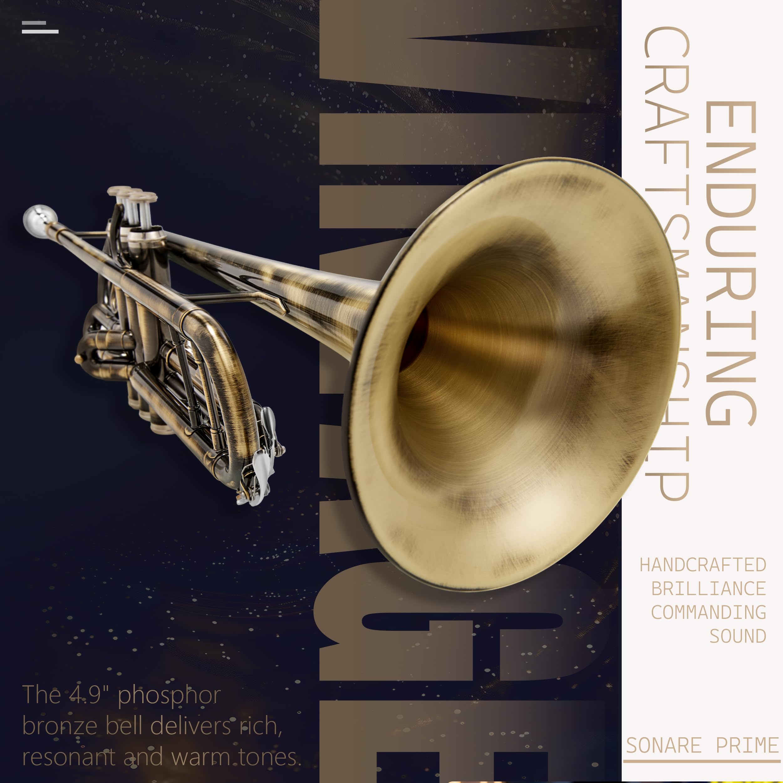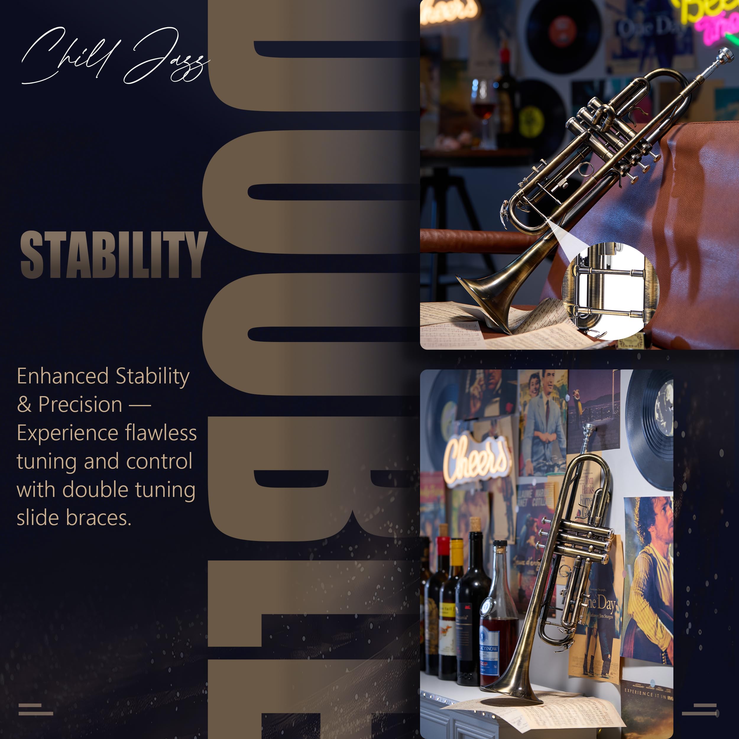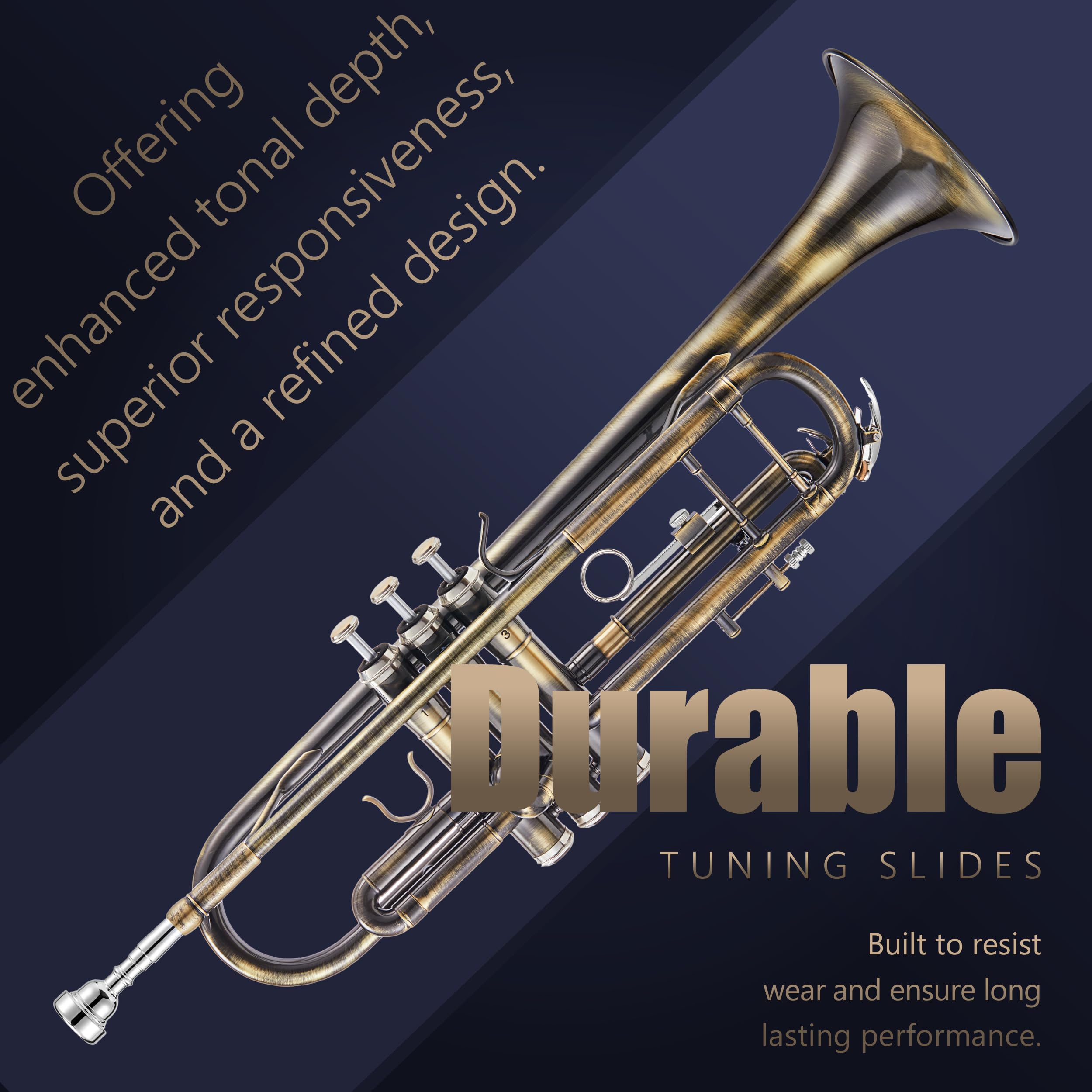 Timeless Elegance in Every Note: Crafted for musicians seeking depth and richness in their sound, this trumpet delivers a warm, refined tone with exceptional control. Whether performing in a jazz ensemble or playing classical melodies, the vintage bronze finishes enhance every note with clarity and warmth. The carefully selected brass and phosphor copper materials, combined with a vintage finish, provide a professional edge, ensuring a beautiful resonance and consistent performance for players who demand both style and substance.