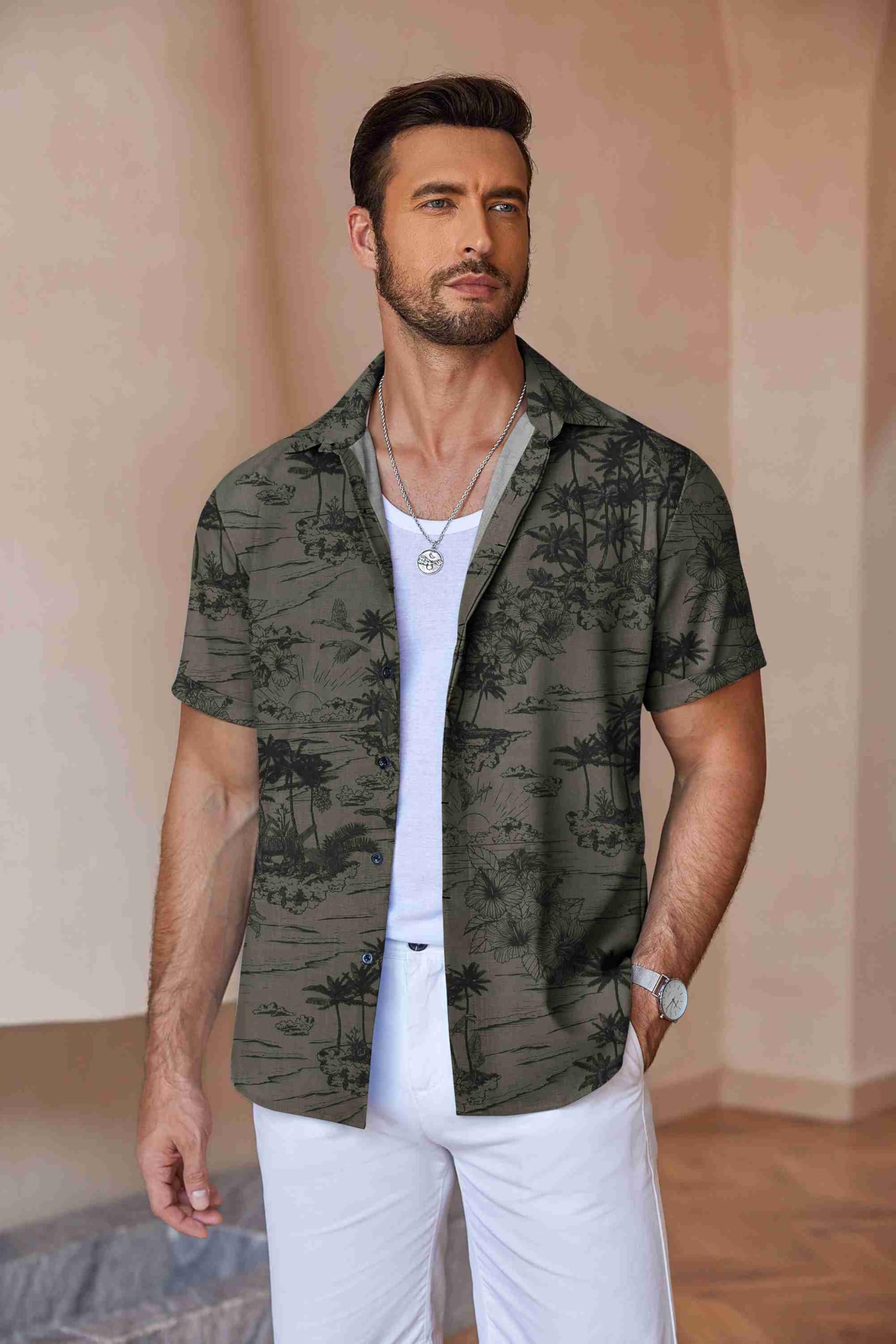 MENS SUMMER OUTFIT --- Mens Summer Shirts Short Sleeve is great to match with beach shorts, solid t-shirts, casual pants, casual shorts. Pair with shorts, sunglasses,a hat, and canvas shoes for your perfect vacation style on the beach