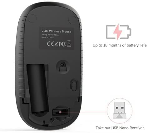 LOW POWER CONSUMPTION: Intelligent sleep mode can better extend battery life. It will enter auto sleep mode if you don't use it for 5 minutes to save battery and need to click it, the mouse will enter working mode again