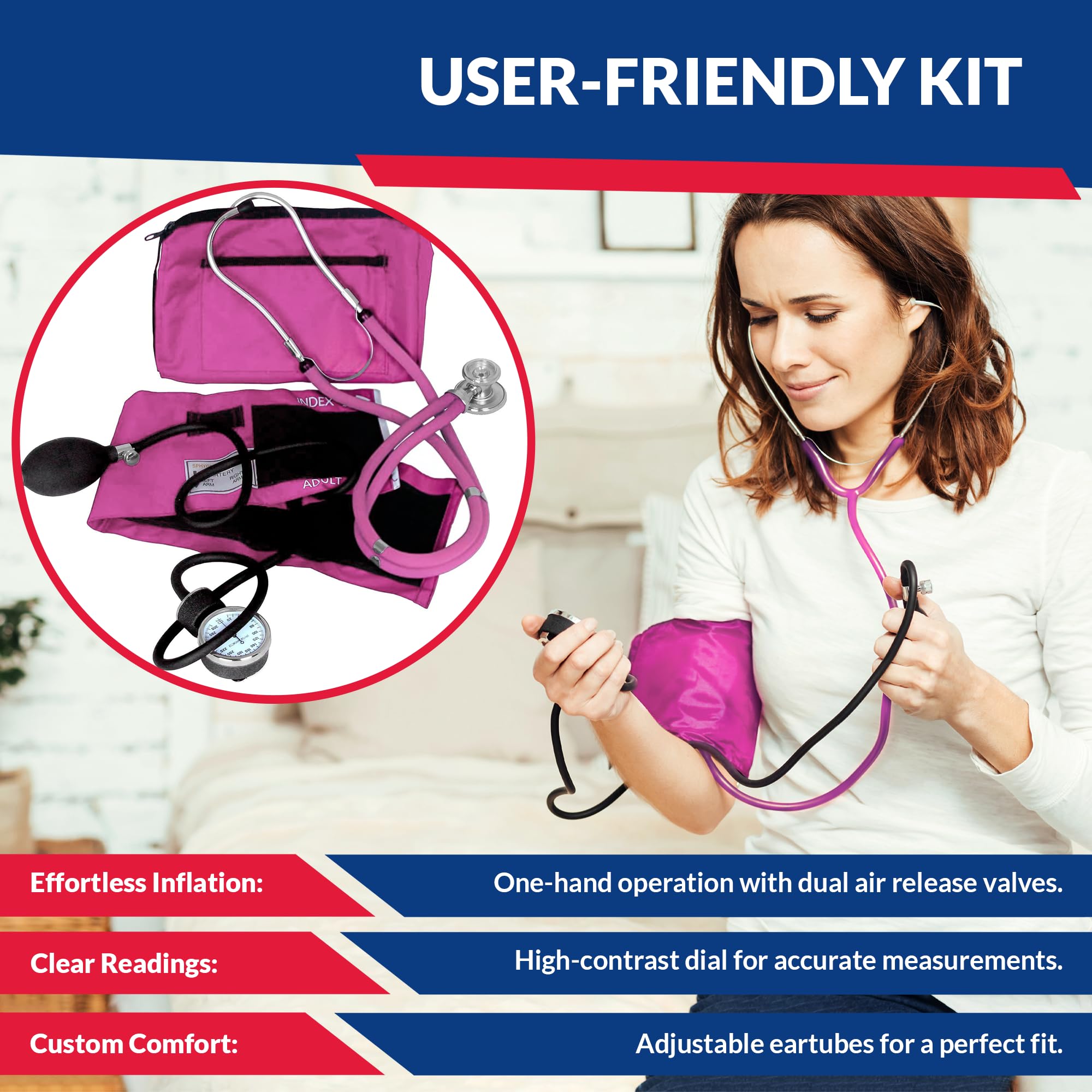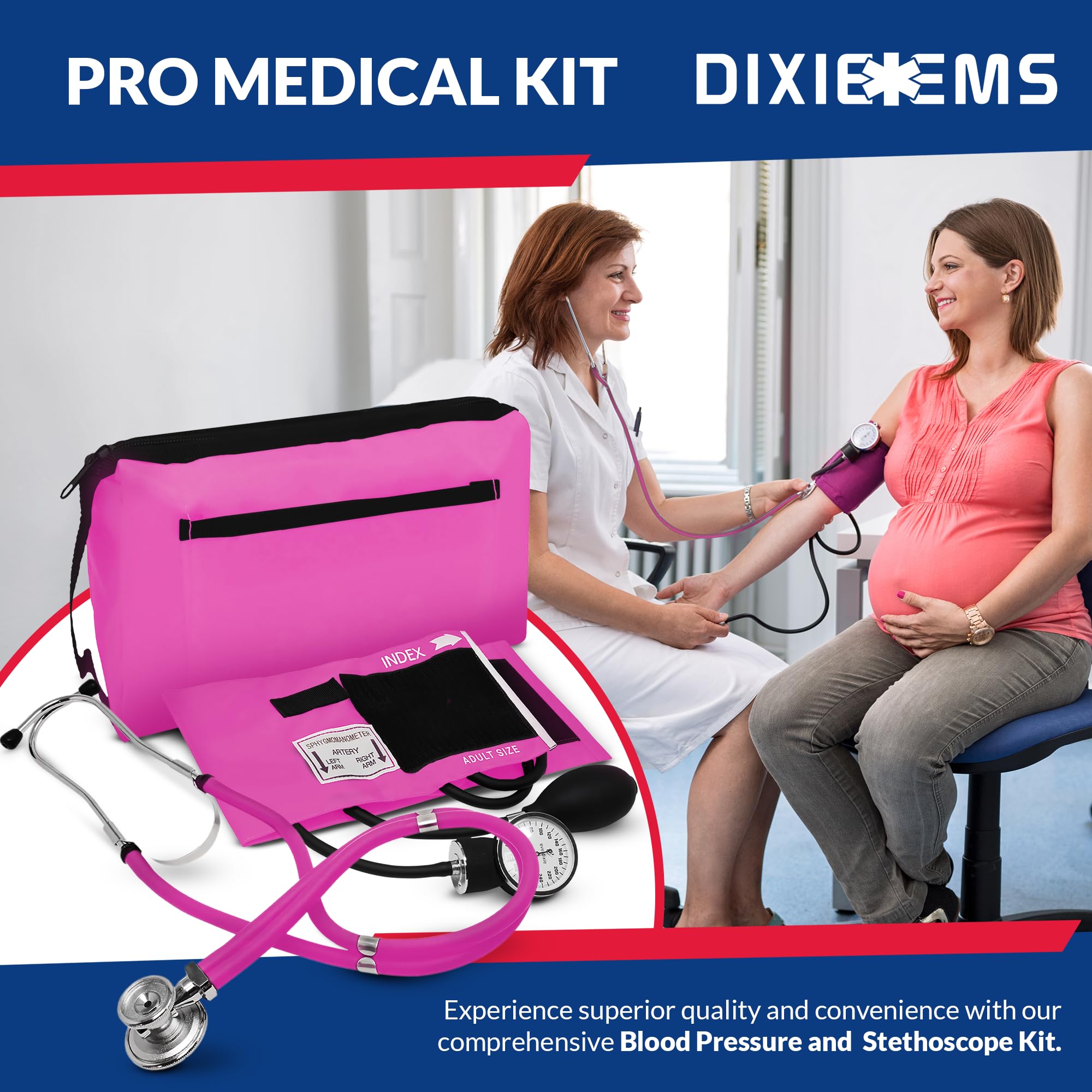 A DELUXE KIT PERFECT FOR DOCTORS & NURSES - Two pieces of high quality medical equipment come bundled together in one convenient package. Dixie EMS offers their high quality aneroid sphygmomanometer adult blood pressure cuff along with a sprague rappaport stethoscope. In addition, your order comes with a complete accessory kit and a deluxe carrying case.