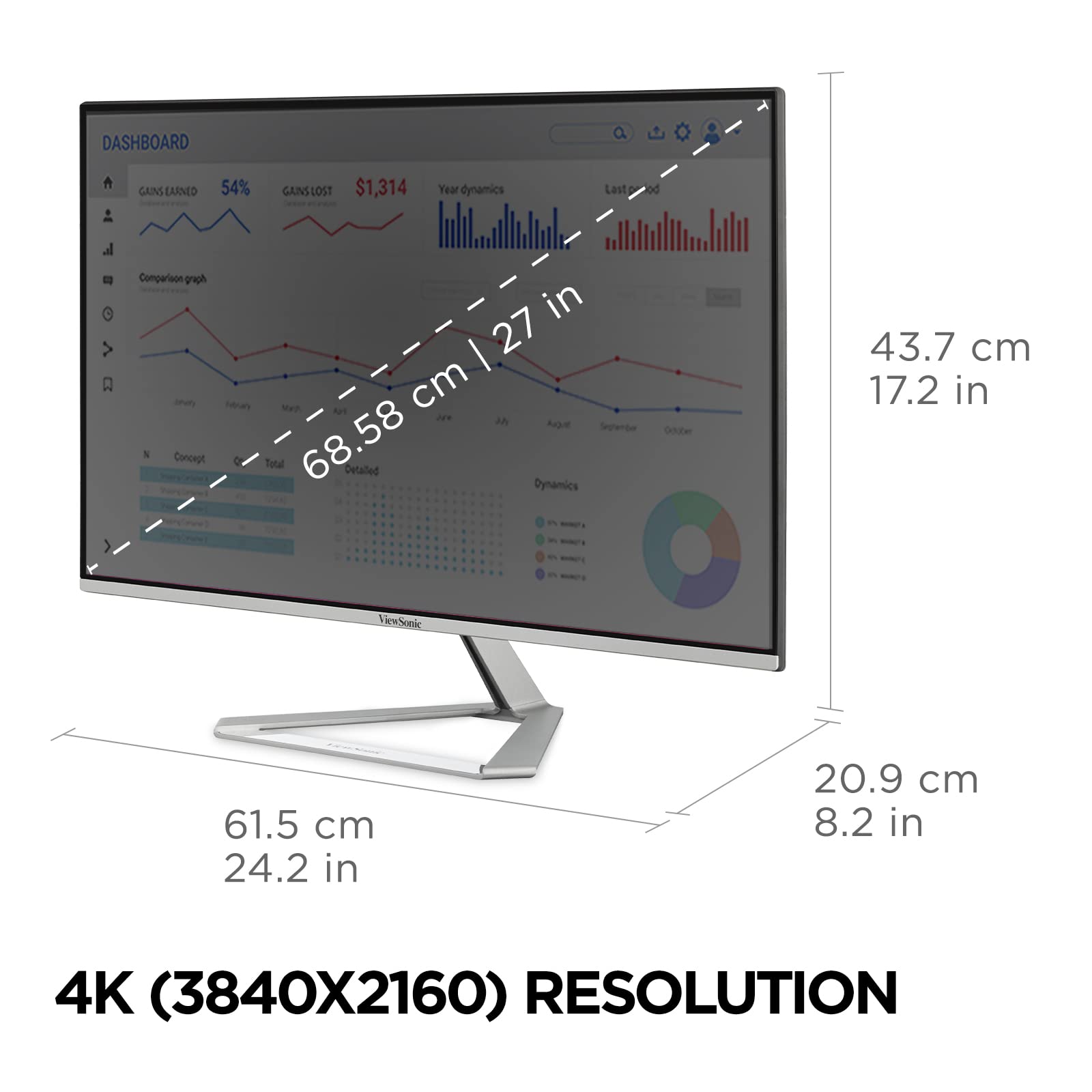 VERSATILE MONITOR: 27 Inch 4K UHD (3840x2160p) IPS monitor with thin bezels and 60Hz refresh rate