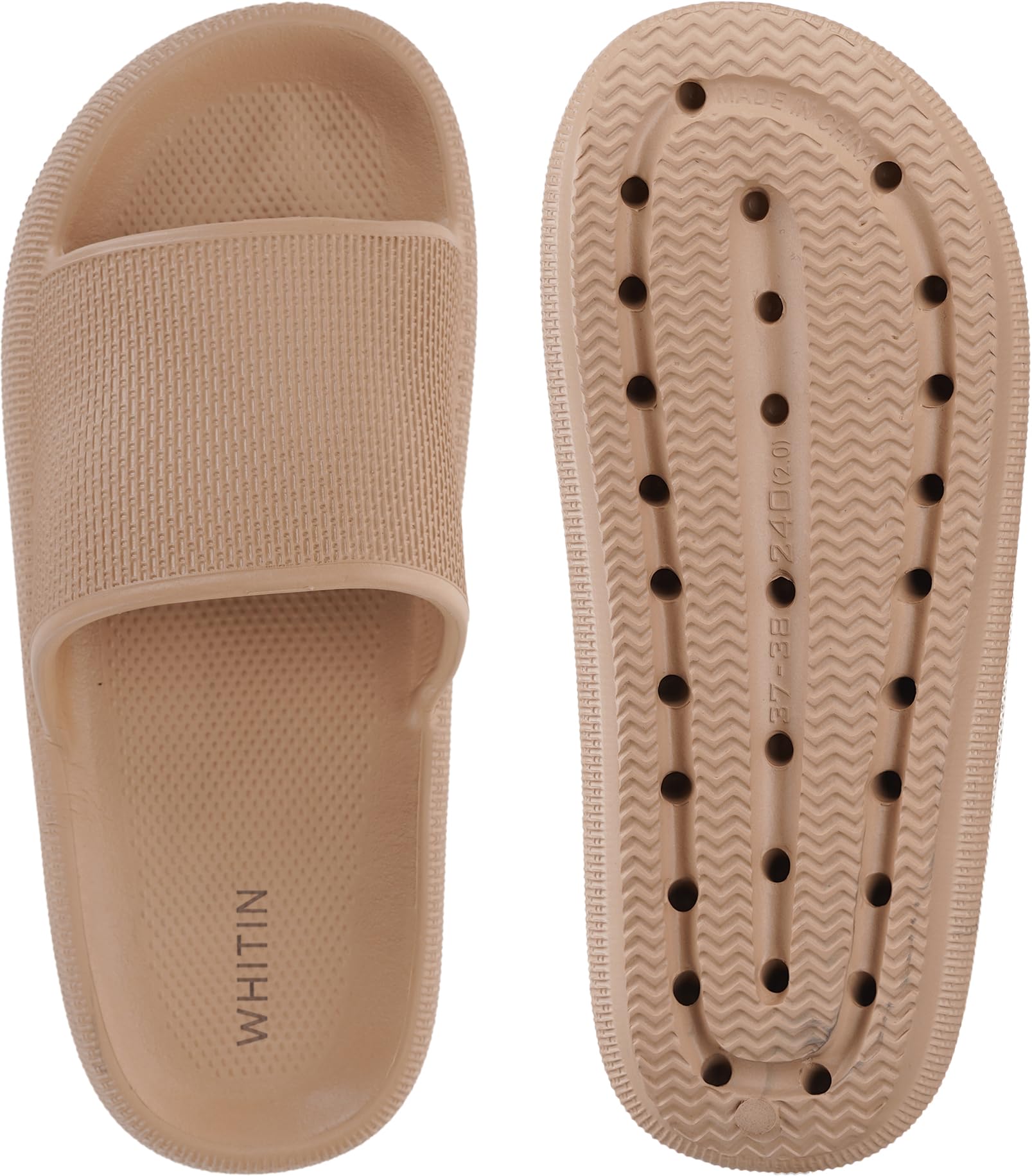 The whole slippers are made of high-density premium EVA material which has excellent flexibility and durability, lightweight, soft, comfortable, breathable and water-resistant