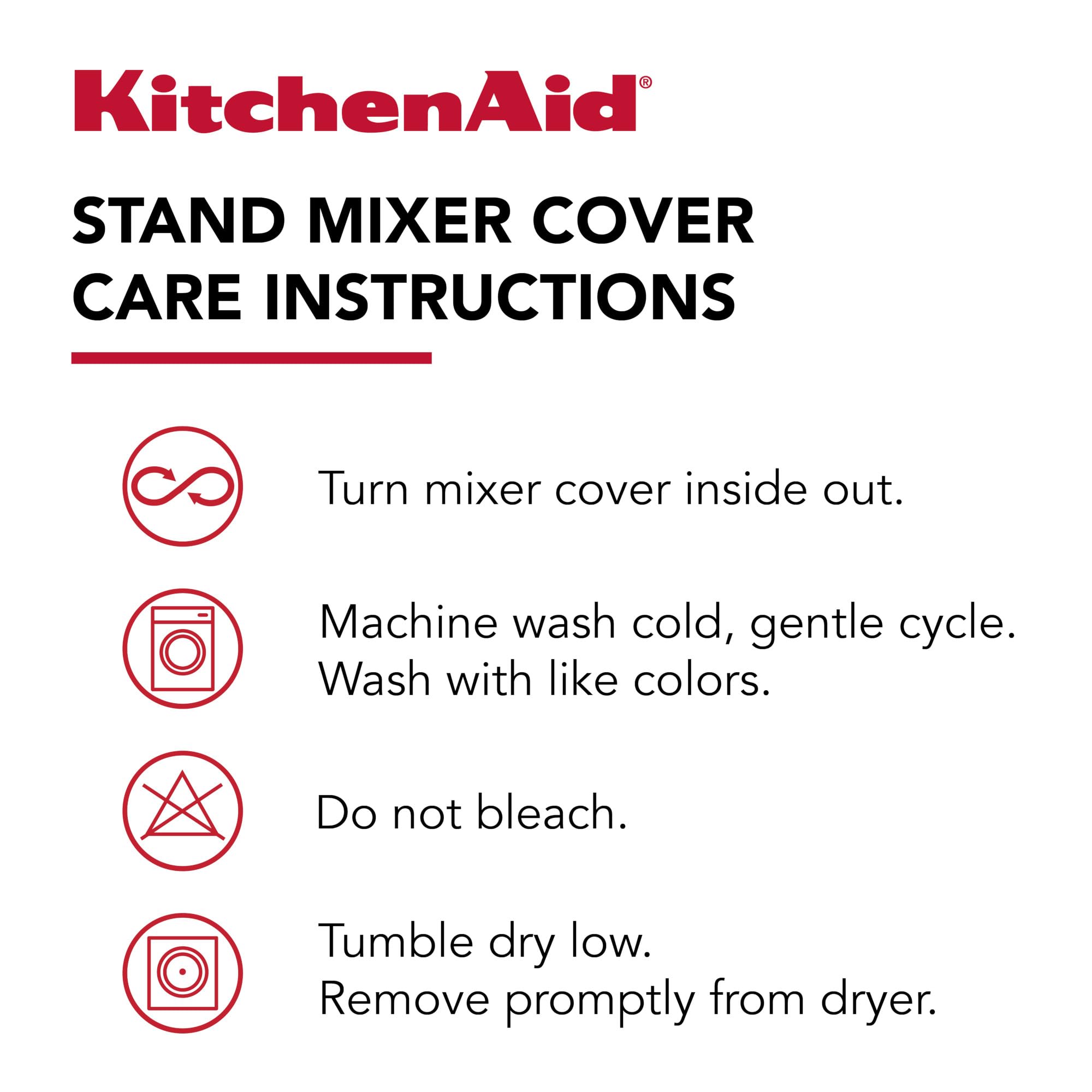 1 mixer cover included, measuring 14.4"x18"x10" to fit all KitchenAid “Tilt-Head” Stand Mixers using standard 3-to-5-quart stainless steel mixing bowls – recent design updates have been made for an overall better fit!