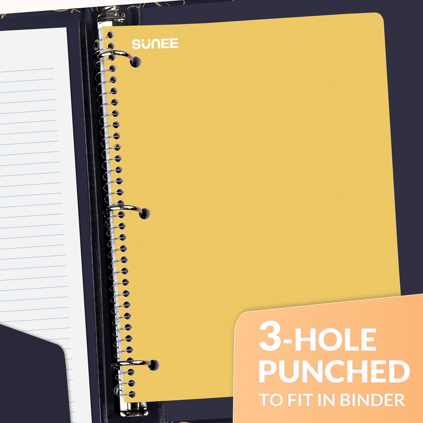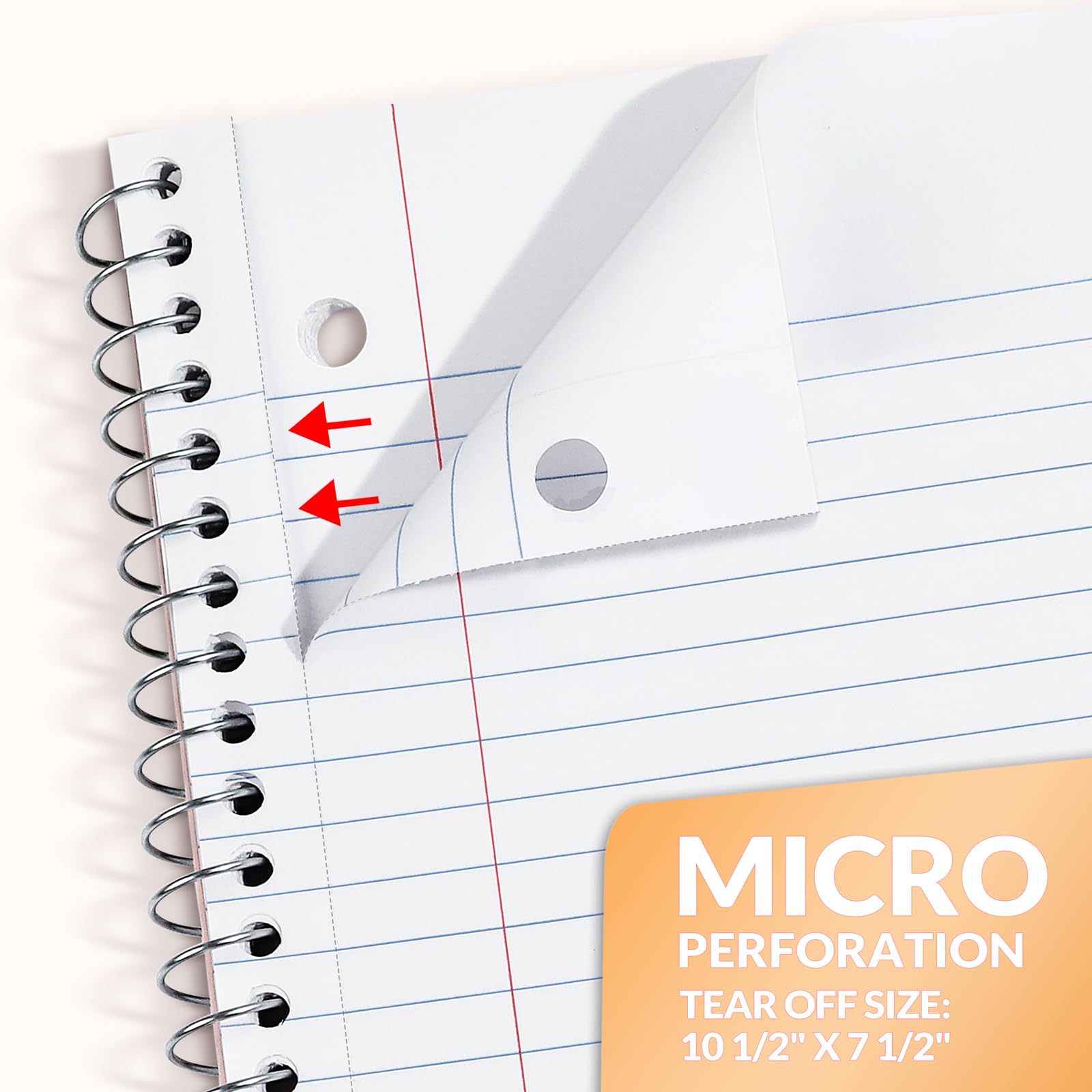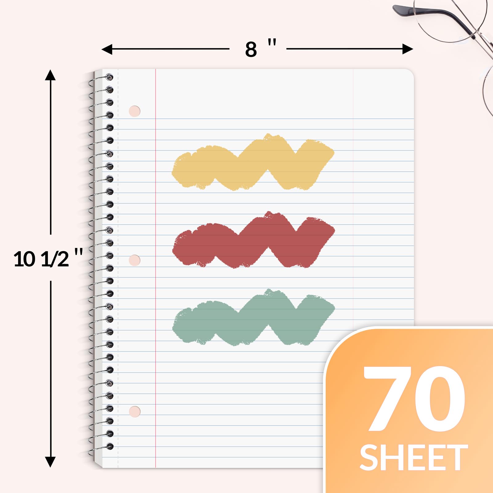 COLLEGE RULED: Each 8" x 10-1/2" notebook features 70 double-sided sheets with red margin lines and is 3-hole punched, allowing for easy transfer to your binder.