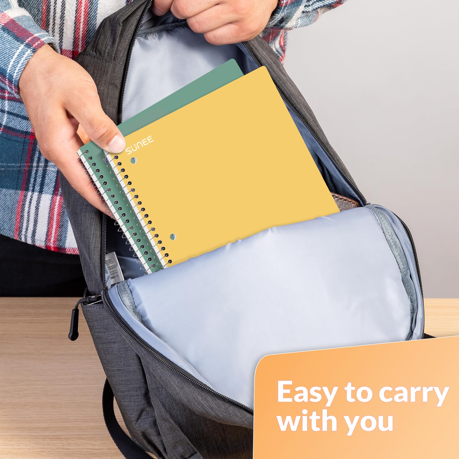SUNEE Spiral Notebooks, 3 Pack, 1-Subject, College Ruled Paper, 8" x 10-1/2", 70 Sheets per Notebook, Assorted Colors Spiral Notebooks for School (Yellow, Red, Sage Green)