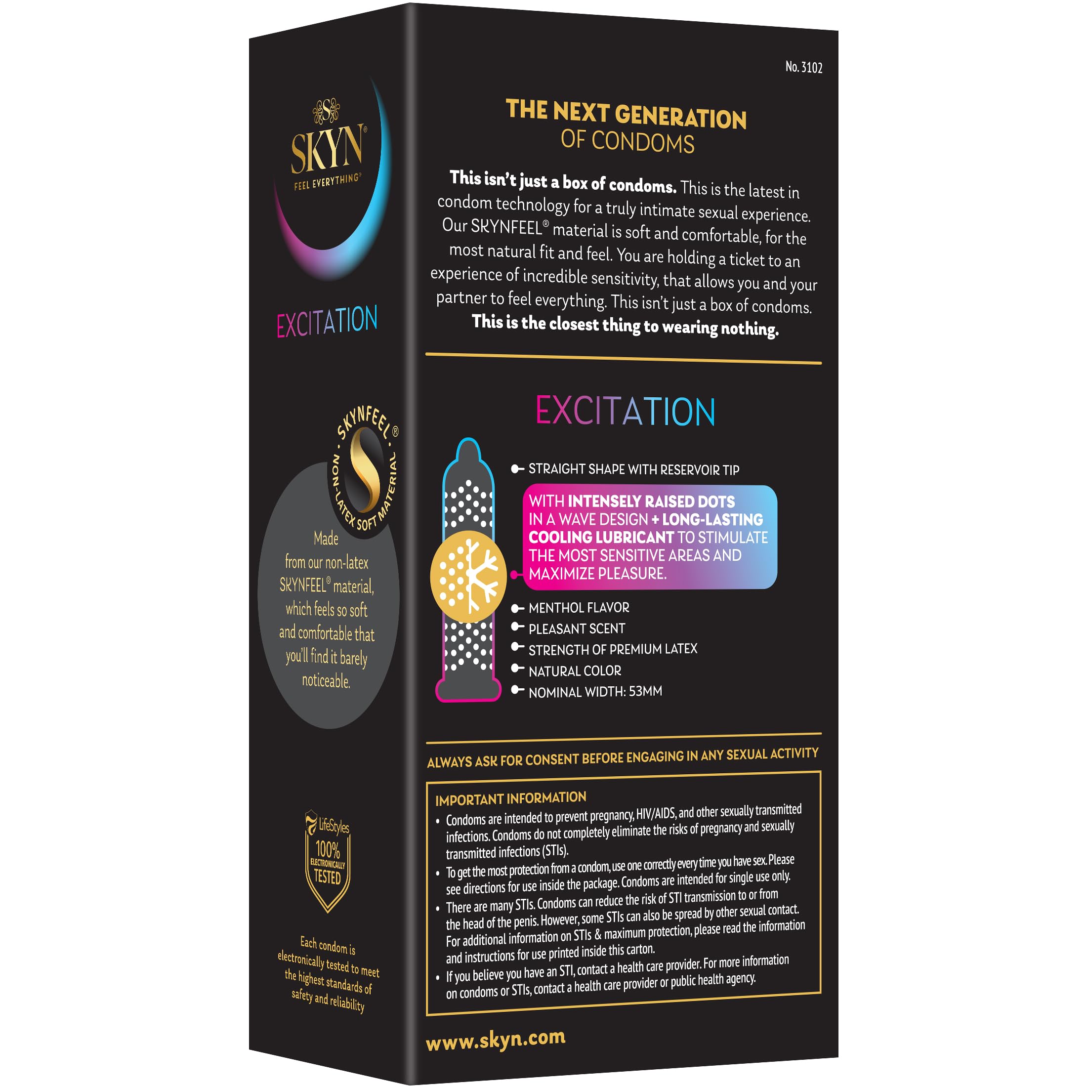 Find your style: SKYN features 4 unique lines, including Original, Elite, Excitation and Studded to meet all your needs; pair them with our line of personal lubricants for a more comfortable experience