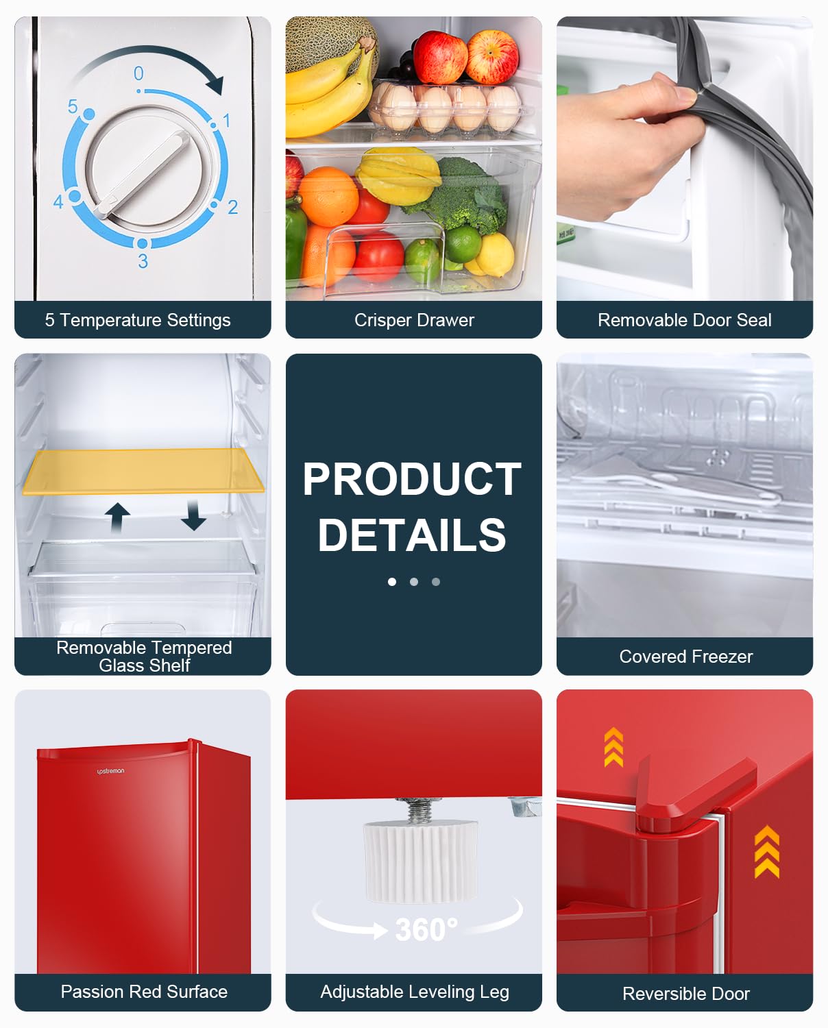 Crisper Drawer & Removable Shelves: Features a crisper drawer to keep your greens and fruits fresh and juicy. The small fridge storage space is adjustable to practical uses with removable shelves. Arrange these shelves how you see fit and youβd be amazed how much the small fridge can stores