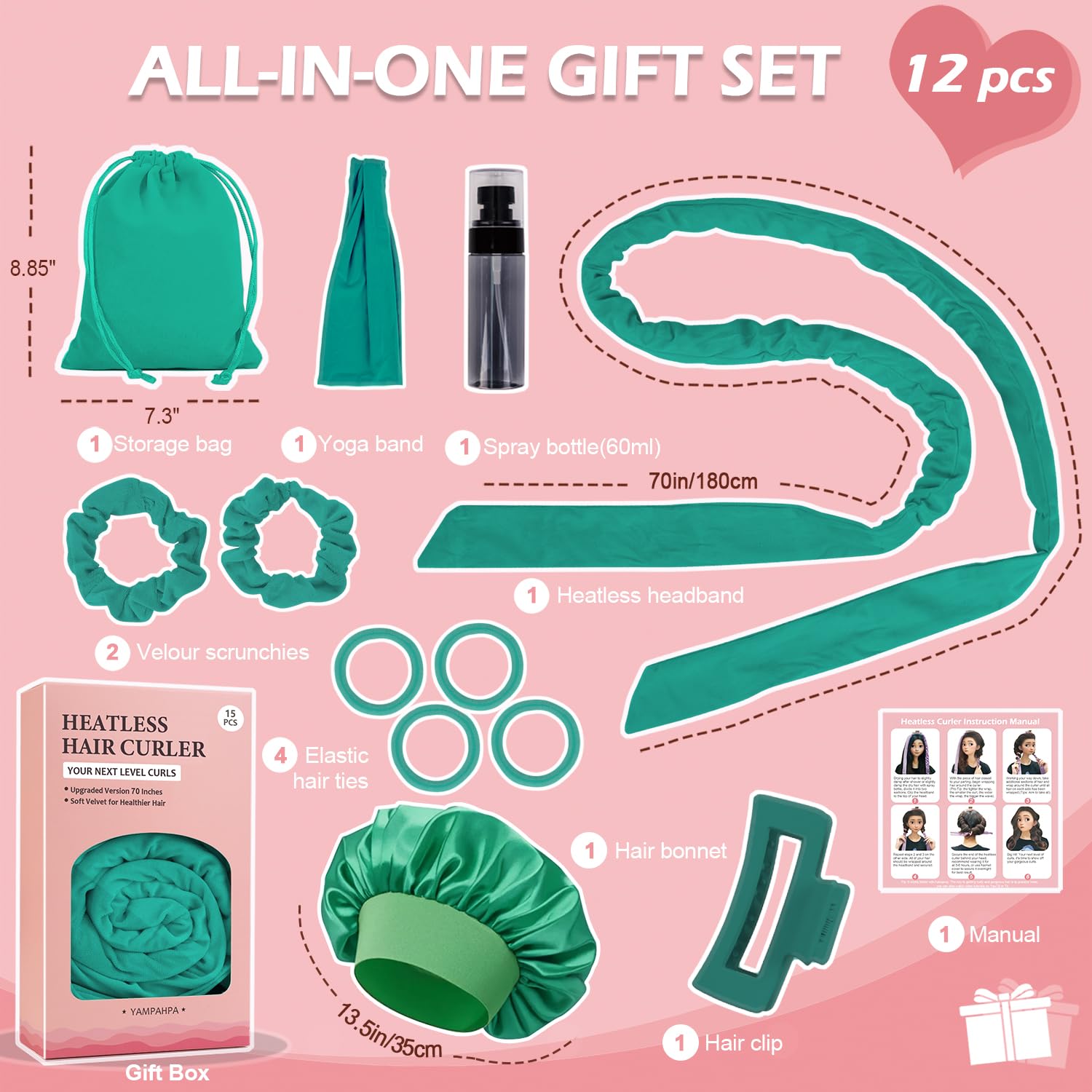 70" extra-long heatless curlers with 13" wide silk bonnet , ideal for sleeping, housework, makeup, gym, running, and yoga