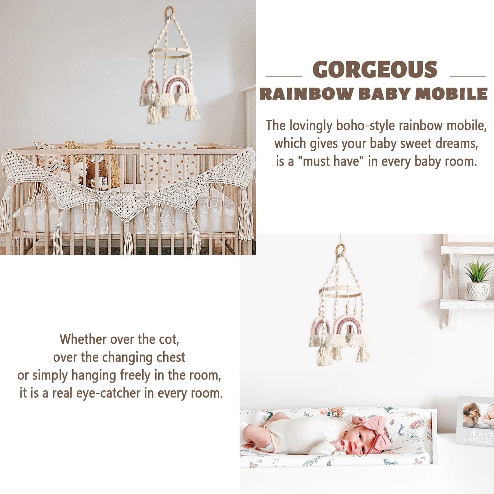 šćNATURAL ECO-FRIENDLY MATERIALćThe gorgeous rainbow baby mobile is made of 100% environmentally friendly natural materials - cotton, yarn, wooden hoop. All rainbows and tassels are made of 100% cotton and individually handcrafted. Safe and soft. Give your rainbow baby your natural love!