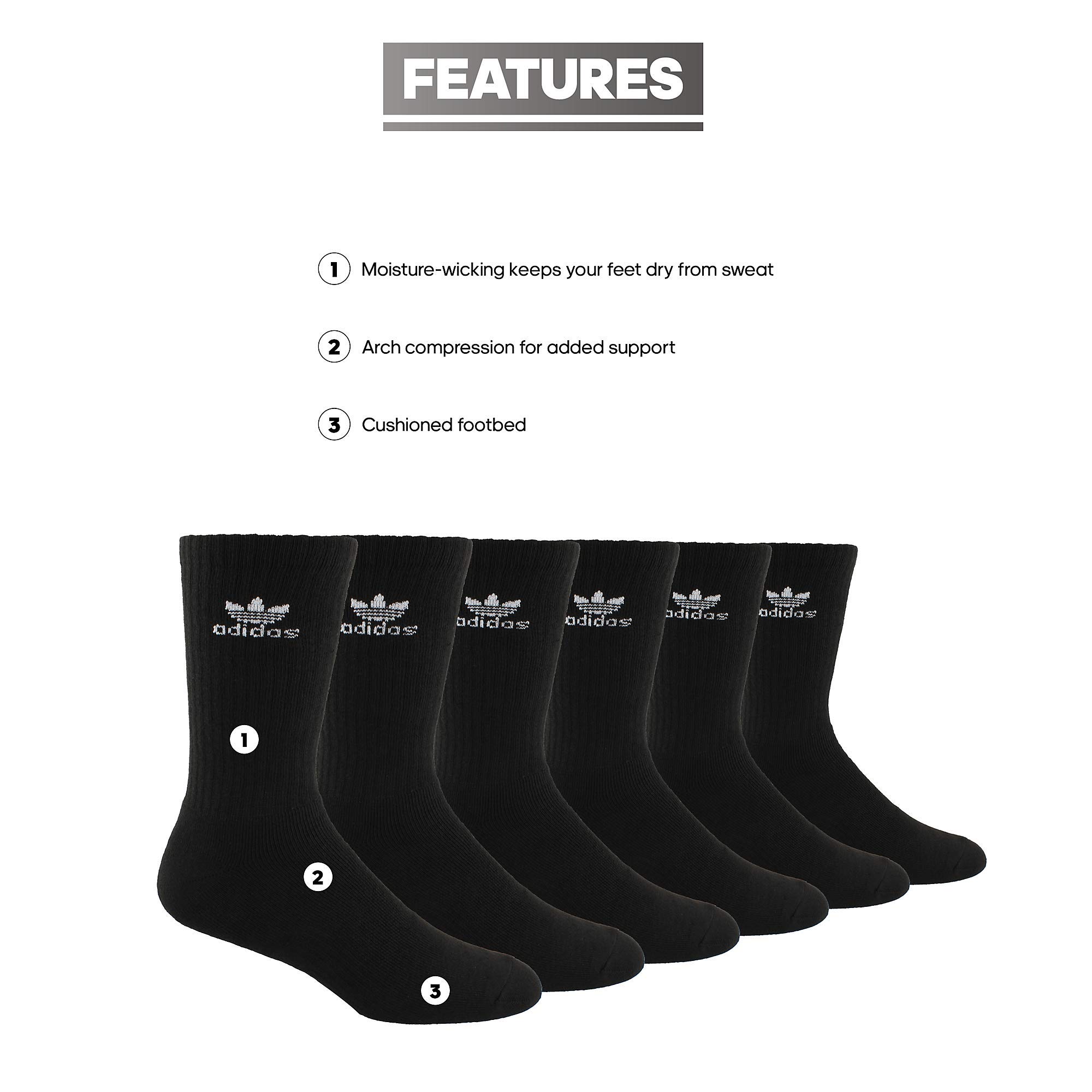 Description The Trefoil Crew is all about clean, comfortable style. Cushioning in the foot gives you the comfort and durability for everyday wear, arch compression will keep the sock snug and secure on your foot, and moisture-wicking will keep your feet dry from sweat.