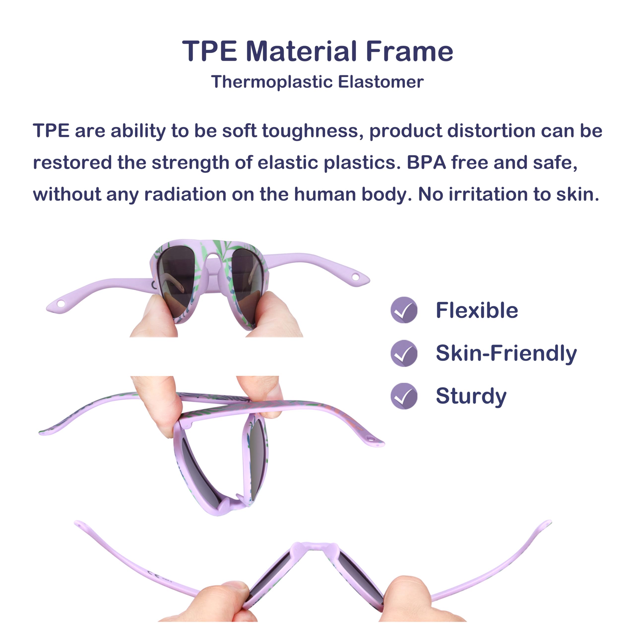 Lens: Polarized lenses. Blocks UVA, UVB and harmful blue ray. HD vision, Glare Free. Wearing it in outdoor activities can reduce eye fatigue, reduce the damage caused by sunlight to baby's eyes