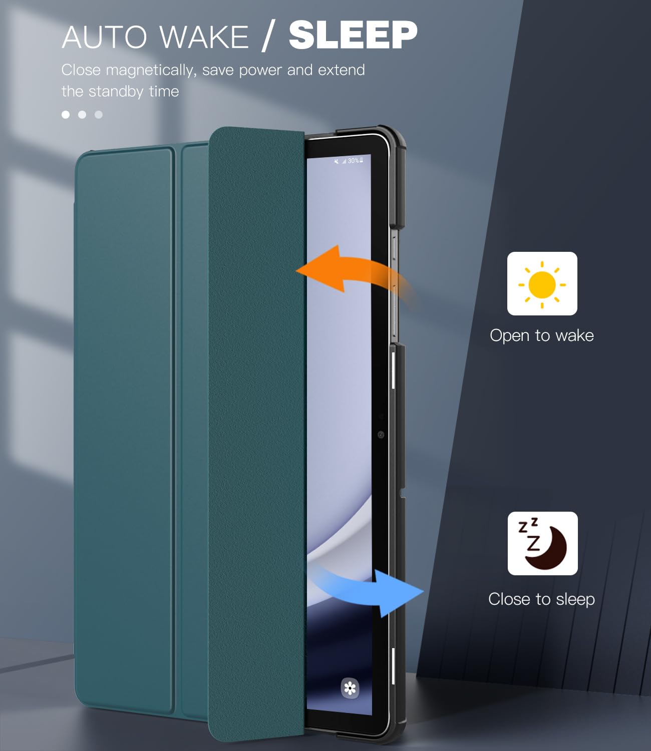 Adjustable Stand Angles: The top of this Galaxy Tab A9 Plus Case folds back to make a stand, which provides a sturdy stand position for both viewing and typing. Free your hands when watching, reading, or writing, a good way to alleviate neck strain