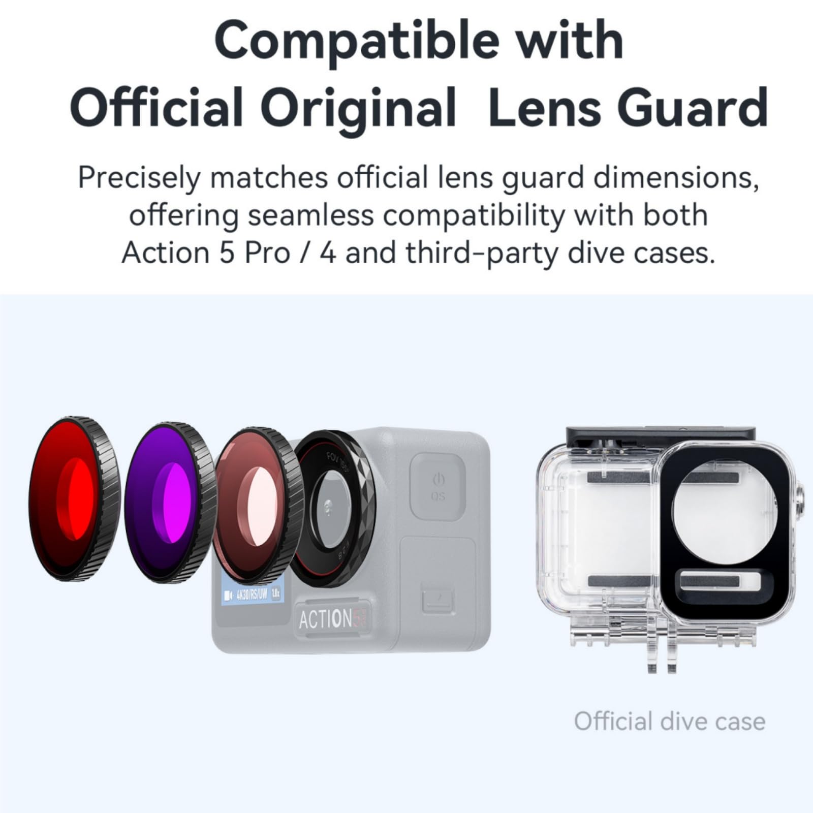 Dimensions match official protective lens for seamless compatibility with Action 5 Pro/4 official waterproof cases and third-party waterproof cases