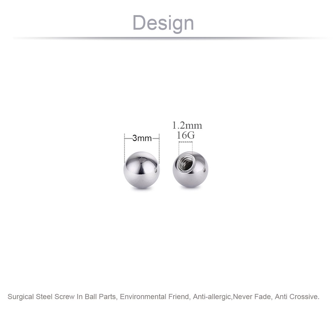 ❤Size:Fit for 16G(1.2mm) Bar, Diameter of Ball=3mm