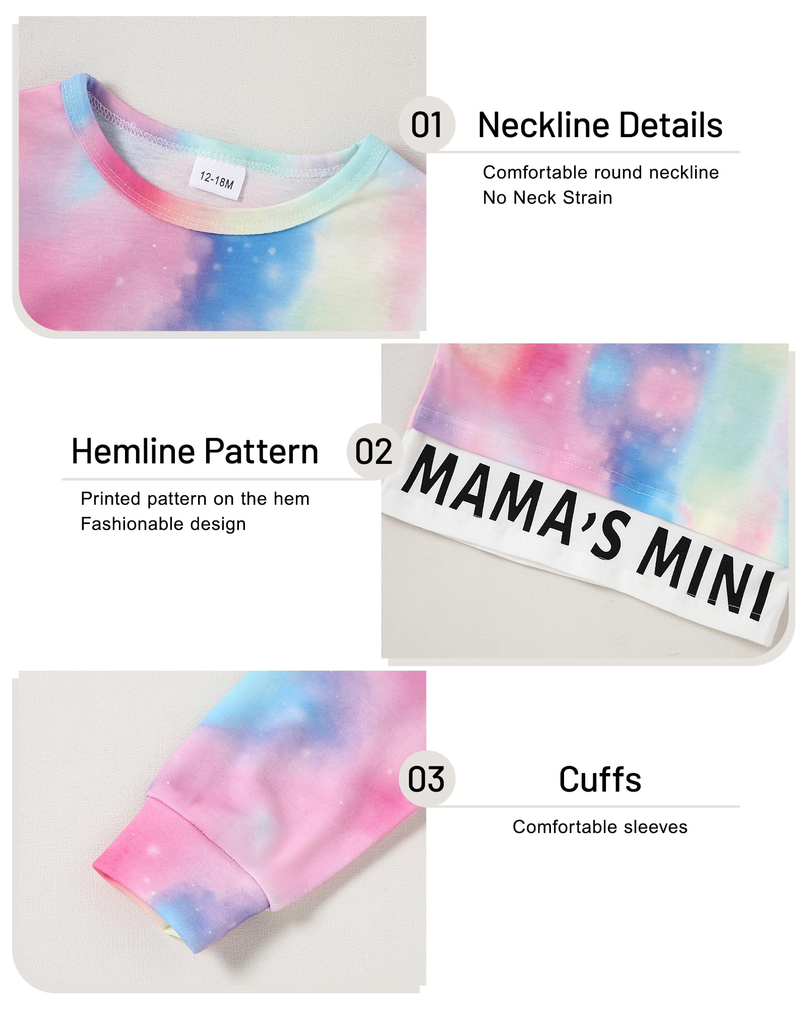 5 Sizes Available - 12-18 month baby girl outfits,18-24 month Toddler girl clothes, 2-3t long sleeve sweatshirt,3-4t toddler girl outfits,4-5 year old toddler girls clothing,kids toddler baby girl pants outfits.Please carefully check the ruler before ordering.