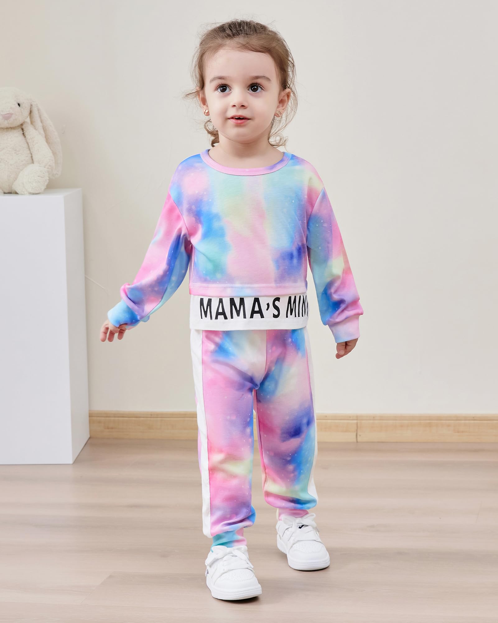 Cute Toddler Girls Sweatsuits -This Toddler girl outfits features a round neck design, loose hem, and elastic waistband pants, which are very loose to wear and give children more freedom.