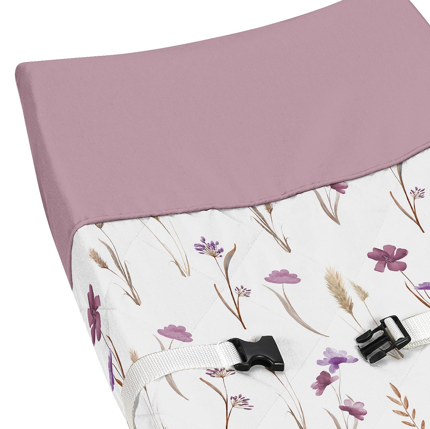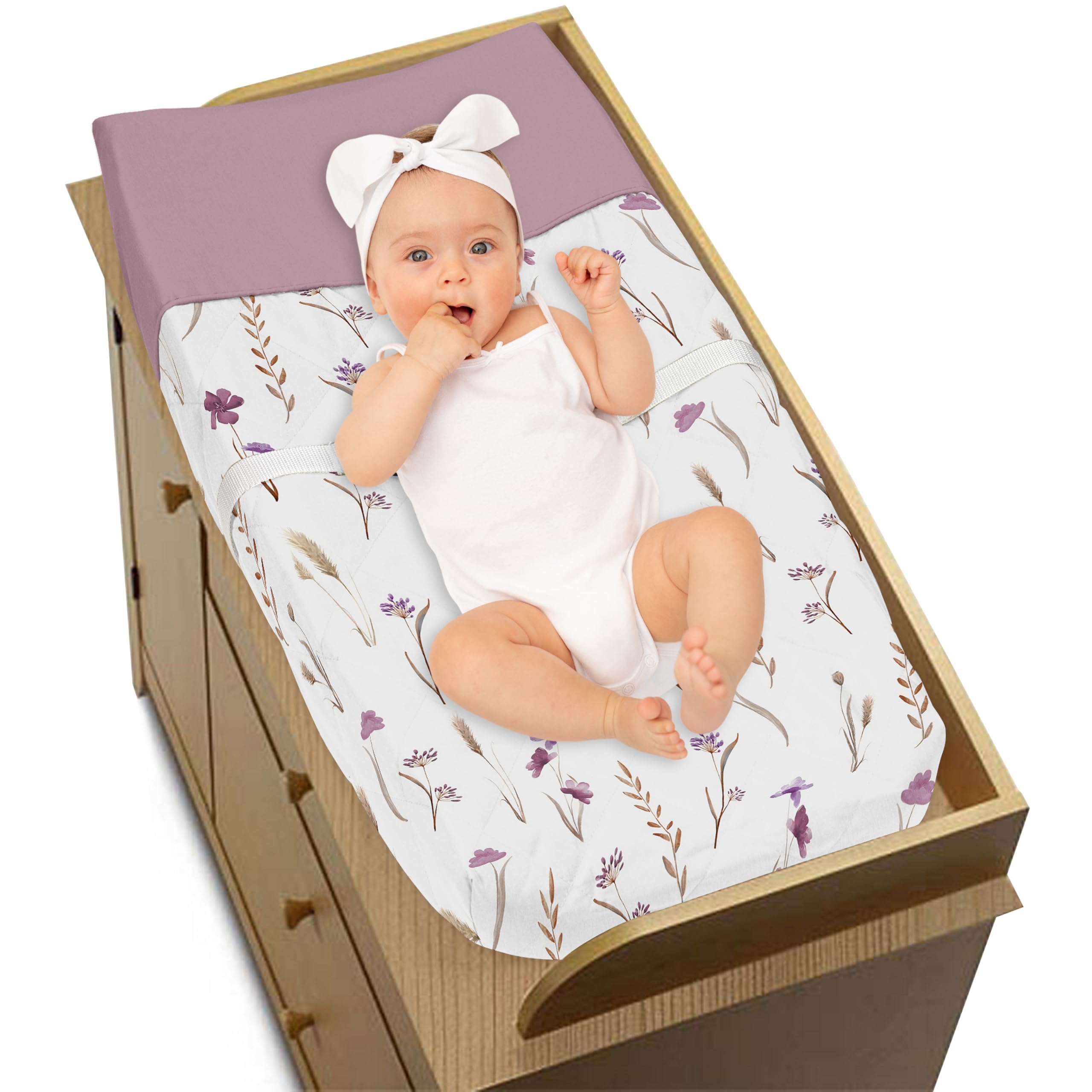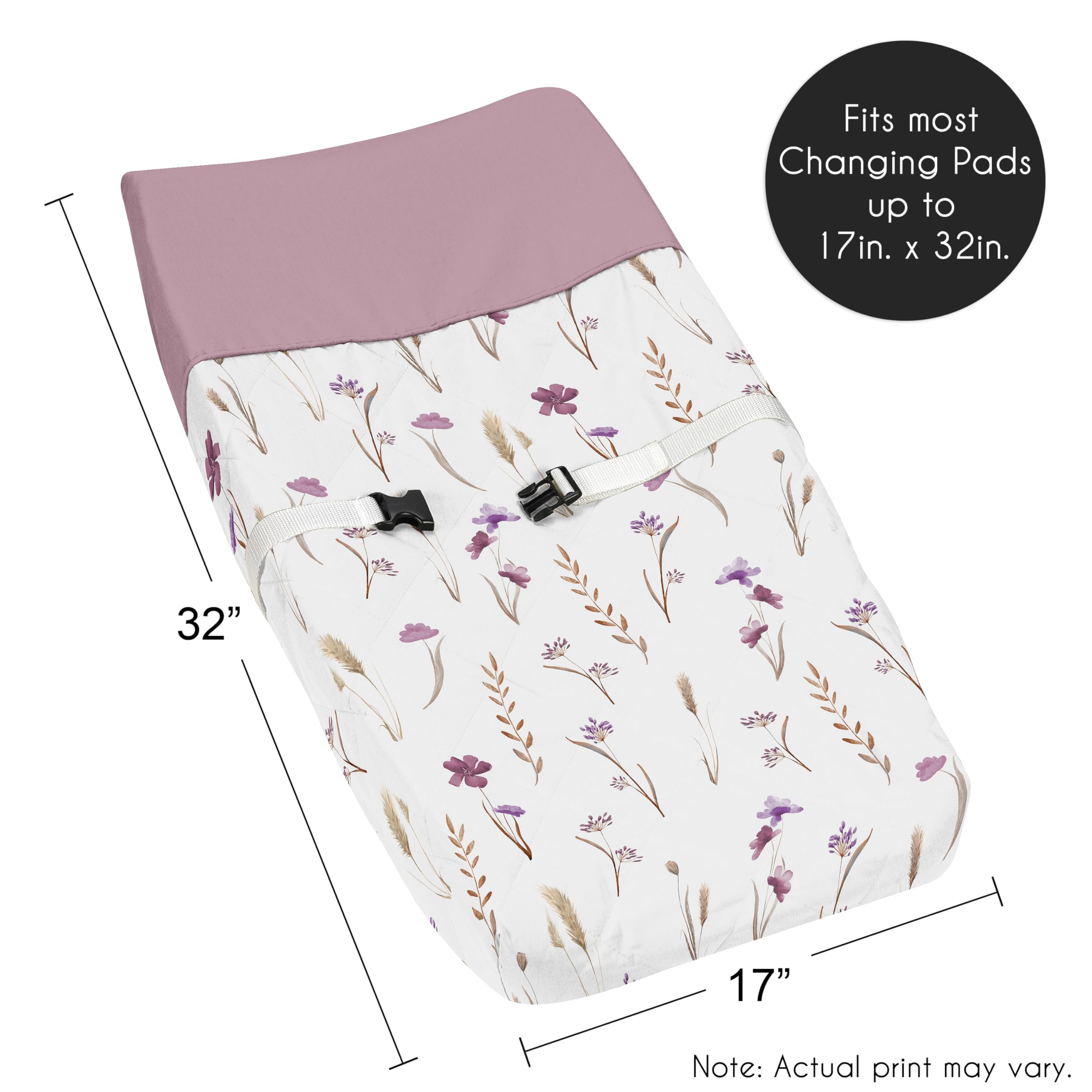 This brushed microfiber diaper pad cover features an exclusive design of a lavender purple plum lilac violet taupe beige boho floral garden watercolor bohemian farmhouse wildflower vintage shabby chic wheat nature flower print.