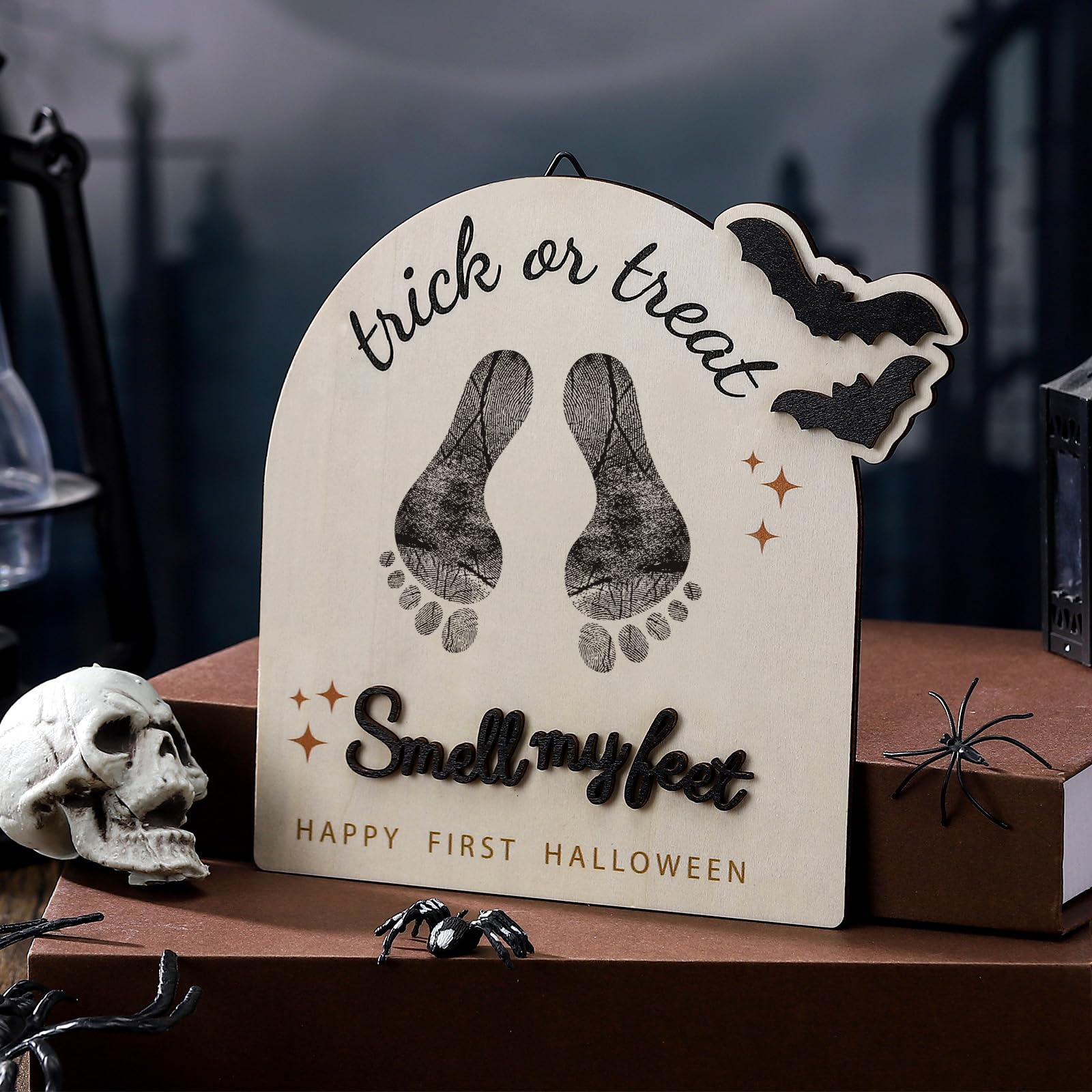 Suitable Proportioned: the footprint art sign measures 7.48 inchesx7.09 inches x0.2 inches, an ideal size for photographs as it complements every frame without overpowering it, this convenient size meets the daily photo matching needs, ensuring your Halloween commemorations are photo-suitable