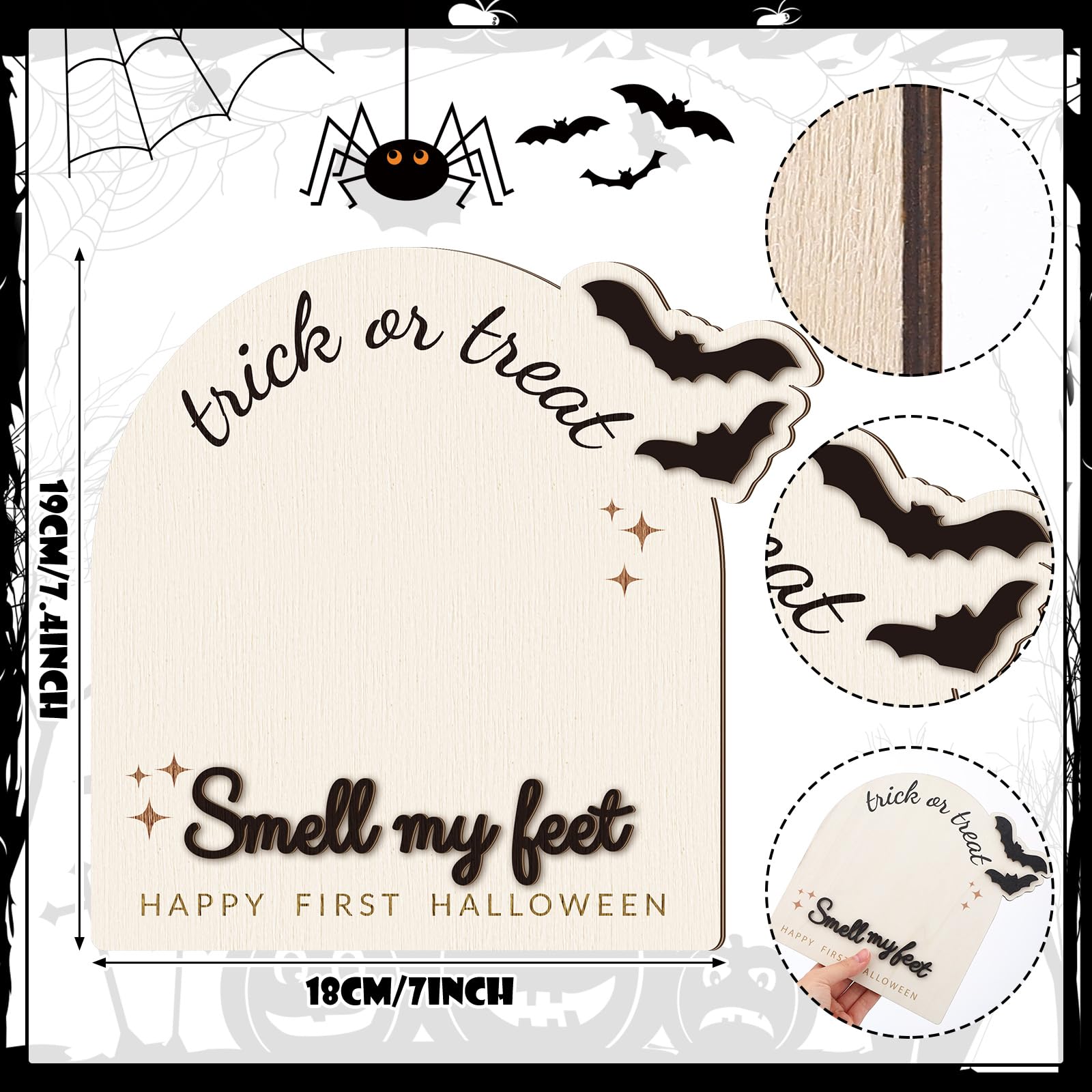 Quality Craftsmanship: our Halloween baby wooden sign is of wooden, ensuring longevity and durability, intricate designs are laser engraved on wooden panels, capturing every detail, this lightweight yet robust sign is a suitable accessory for pregnancy announcements, social media snapshots, scrapbooks, child's room decor, and much more