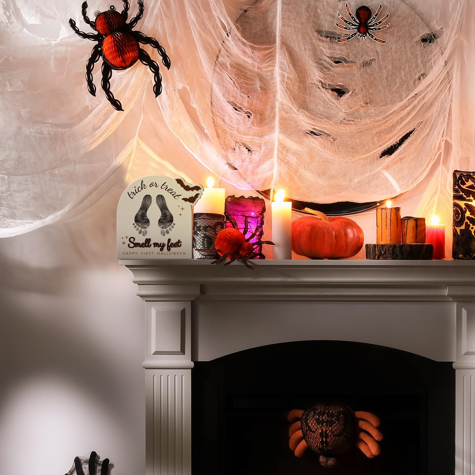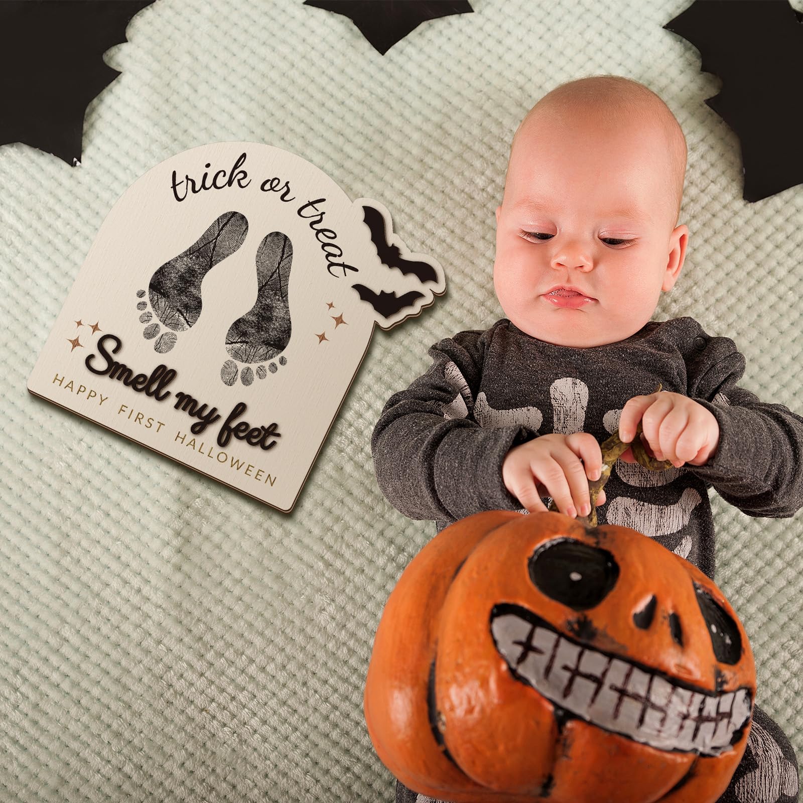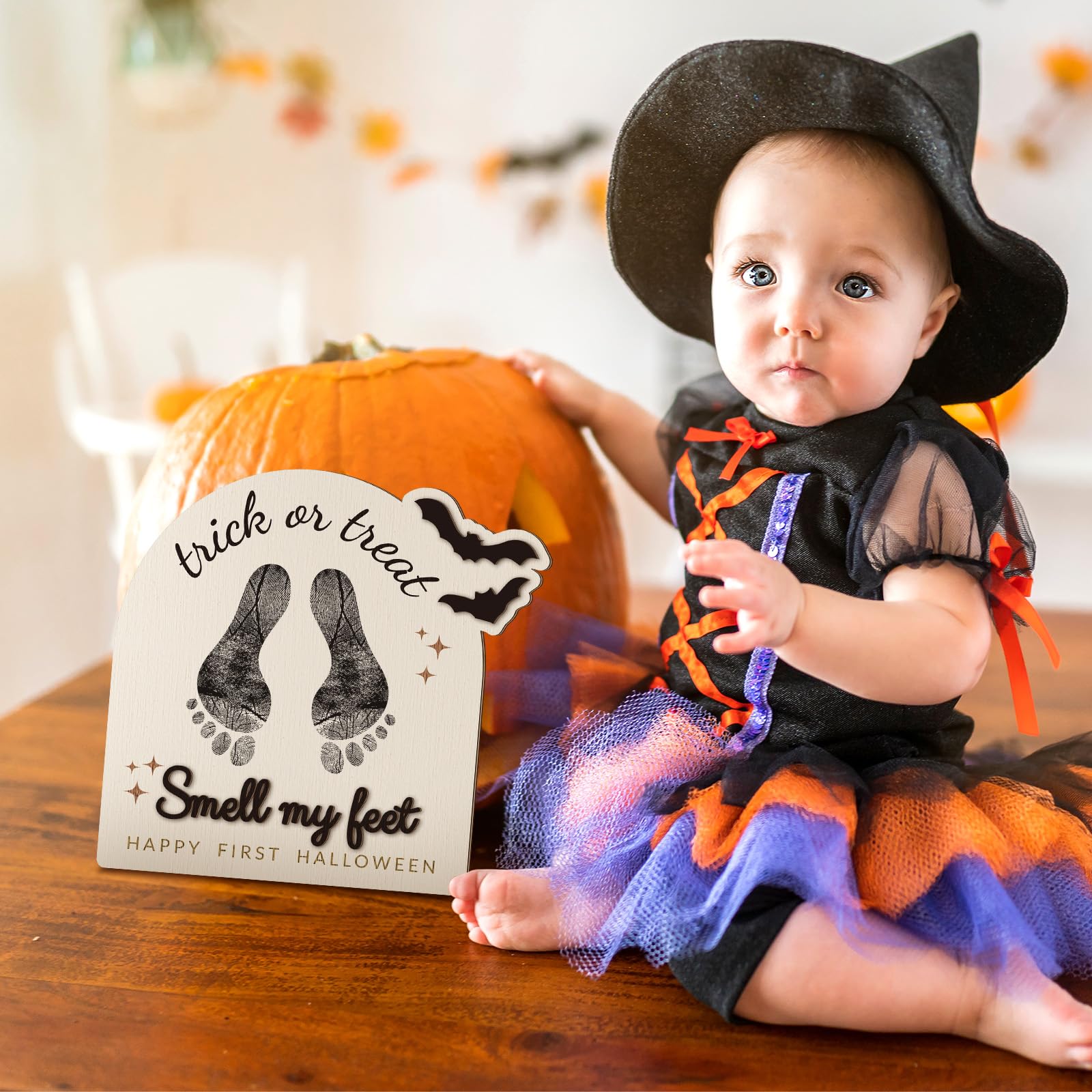 DIY Design: this wooden footprint sign brings a suitable and playful design to your Halloween seasonal decor, its DIY nature means you can personalize it with your child's footprints, making it more meaningful and personal, also can customize your name, date of birth and meaningful words, and record your baby's first Halloween handprints or footprints