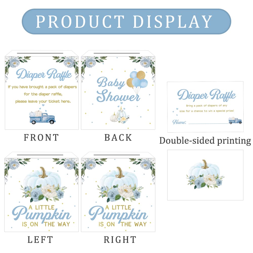 Quality and Reliable: Pumpkin diaper raffle card box is made of quality cardboard, lightweight and reliable, the card box is printed with different lovely designs on 5 sides except the bottom, clear printing, colorfast and reusable use.