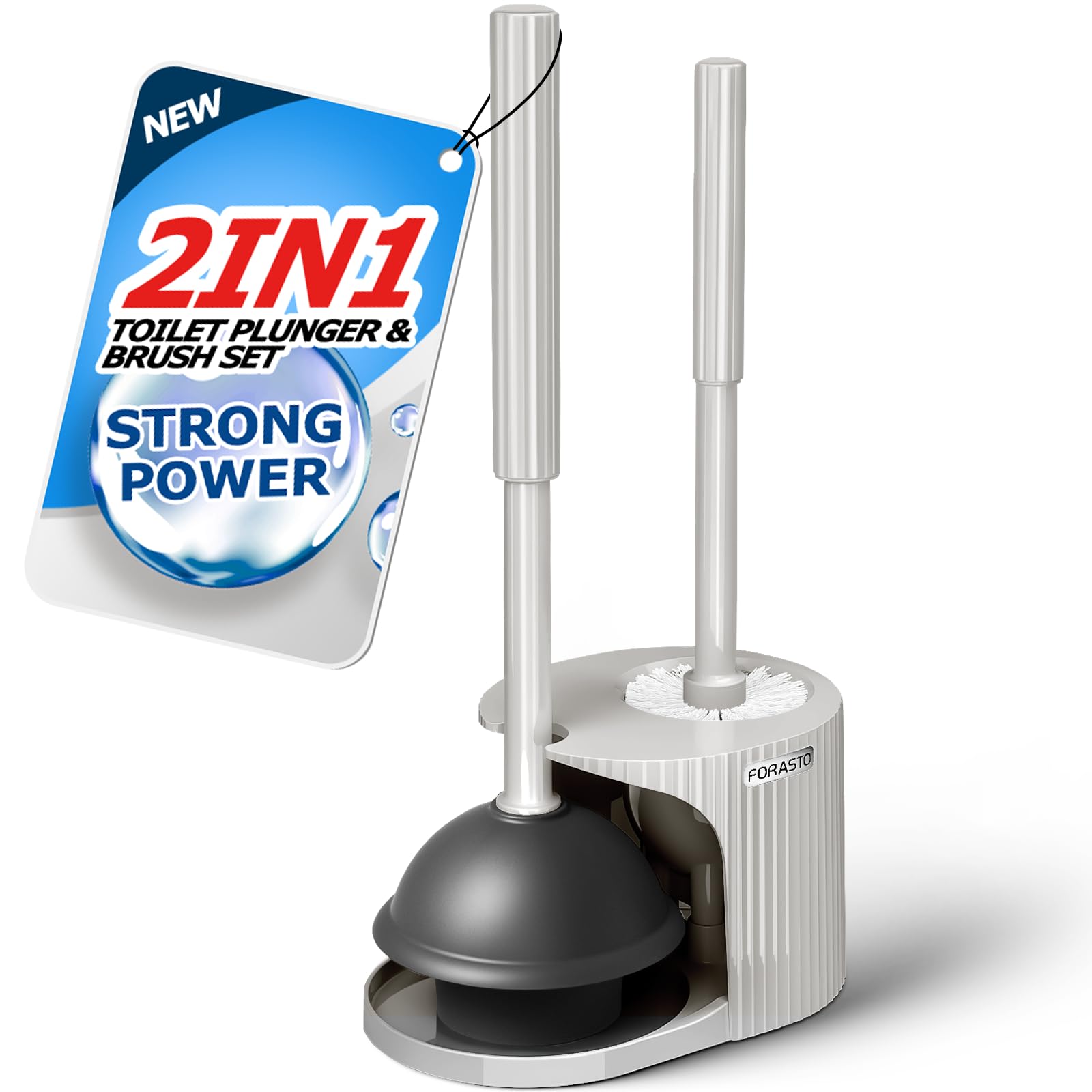 ♦Toilet Brush and Plunger Set: This product has a toilet brush with thick bristles, a high-suction toilet plunger with an extended handle and a stable bracket