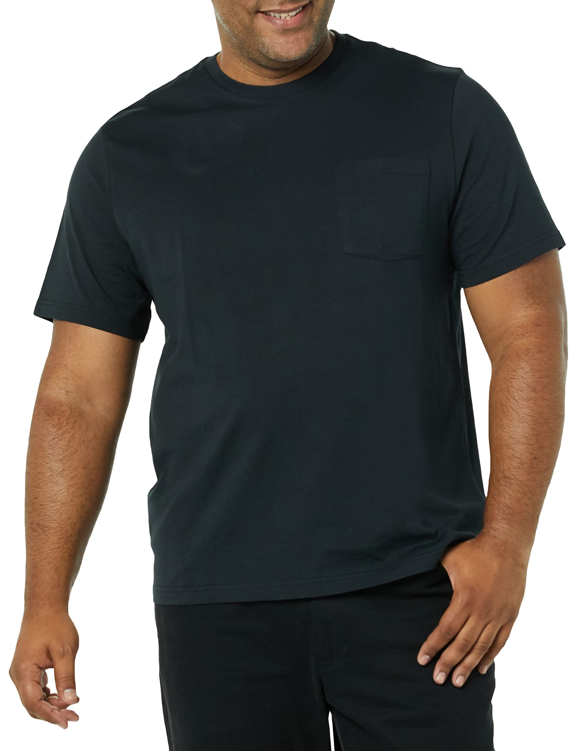 PRACTICAL DETAILS: Designed for convenience and comfort with ribbed neck trim, a front chest pocket, and a tagless label, these pocket tee shirts offer soft jersey-knit taping along the neck seam