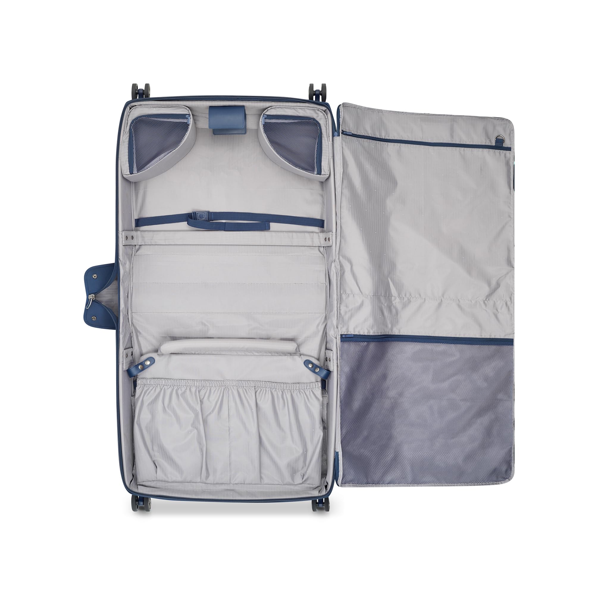 Constructed of lightweight and durable DuraTec fabric that stands up to rigors of travel and looks great; keep suits, dresses, and delicate clothing wrinkle-free with the spacious interior tailored to ensure secure and organized packing