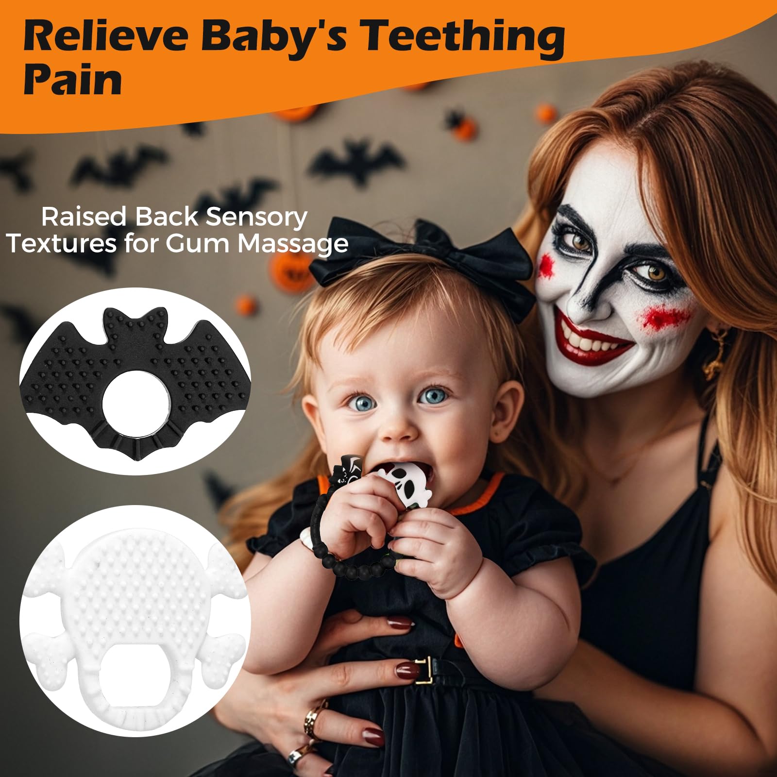【Ideal Halloween Basket Stuffers】These teethers aren’t just practical—they make the perfect addition to your baby’s Halloween basket, adding a touch of spooky fun to their Nightmare Before Christmas adventure.