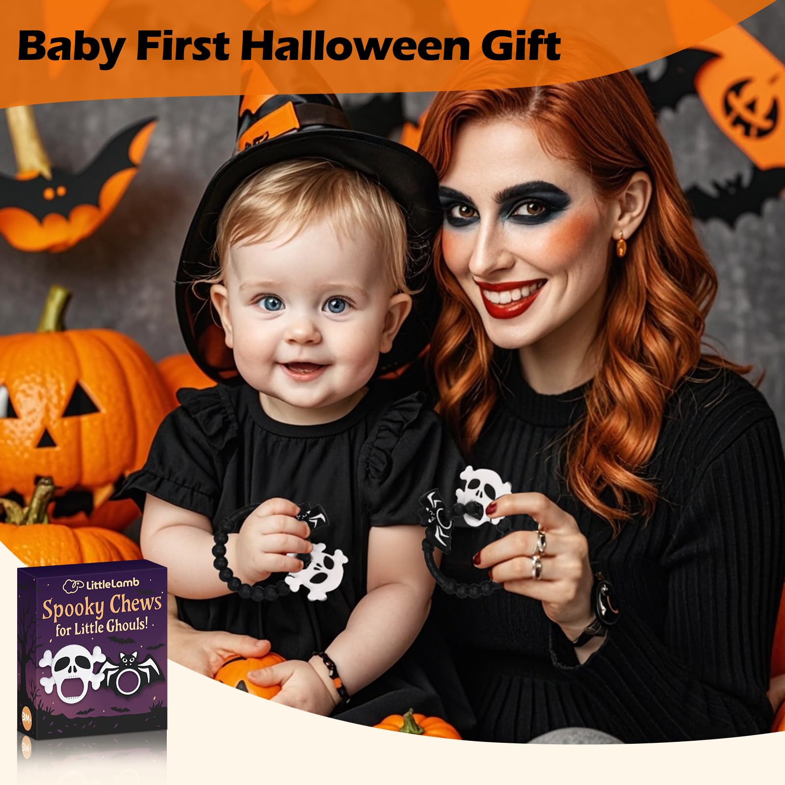 【Spooky & Fun Halloween Design】 Celebrate your baby’s first Halloween with this skull and bat teething bracelet! Perfect for both babies and toddlers, the festive design adds a touch of spooky fun, making teething a memorable experience.