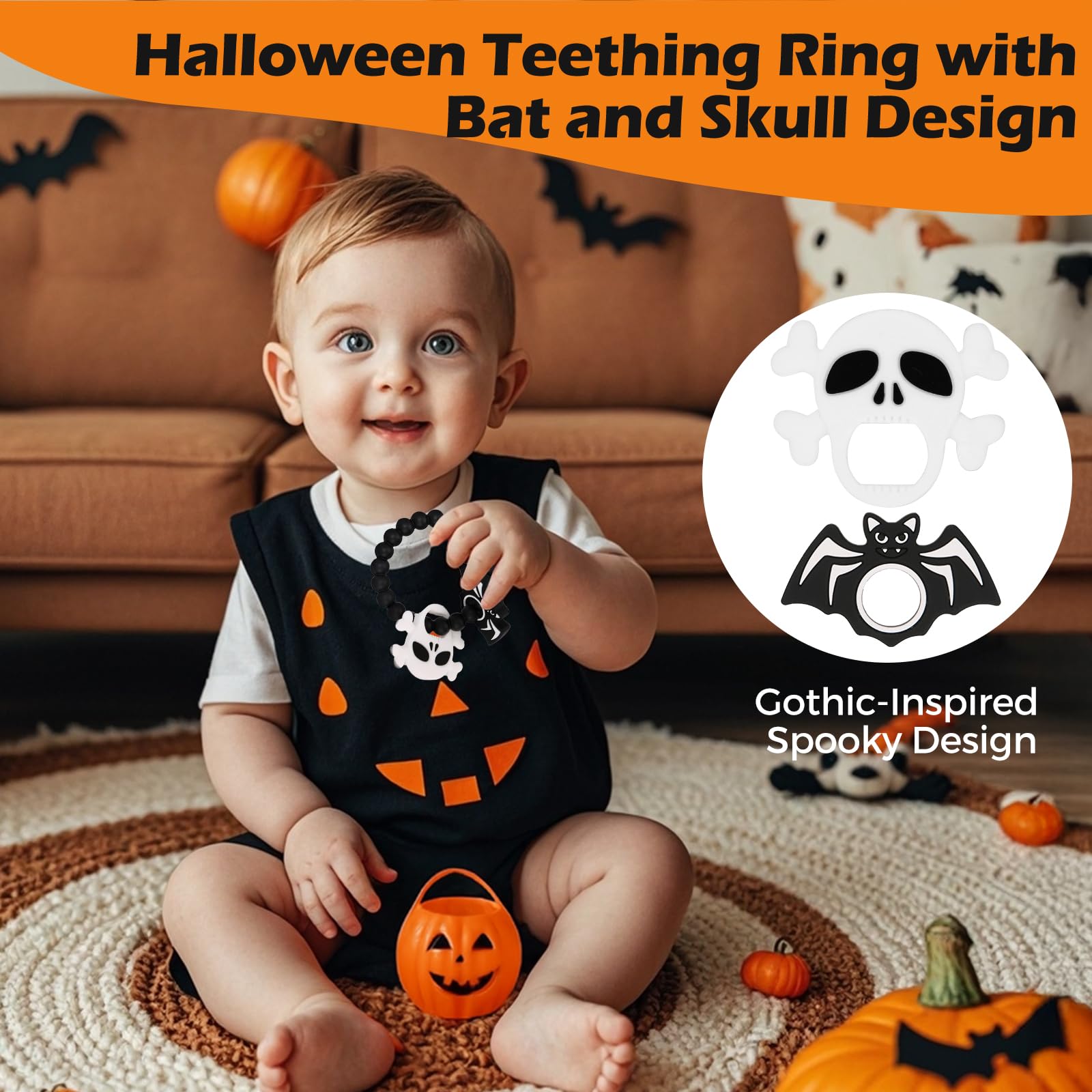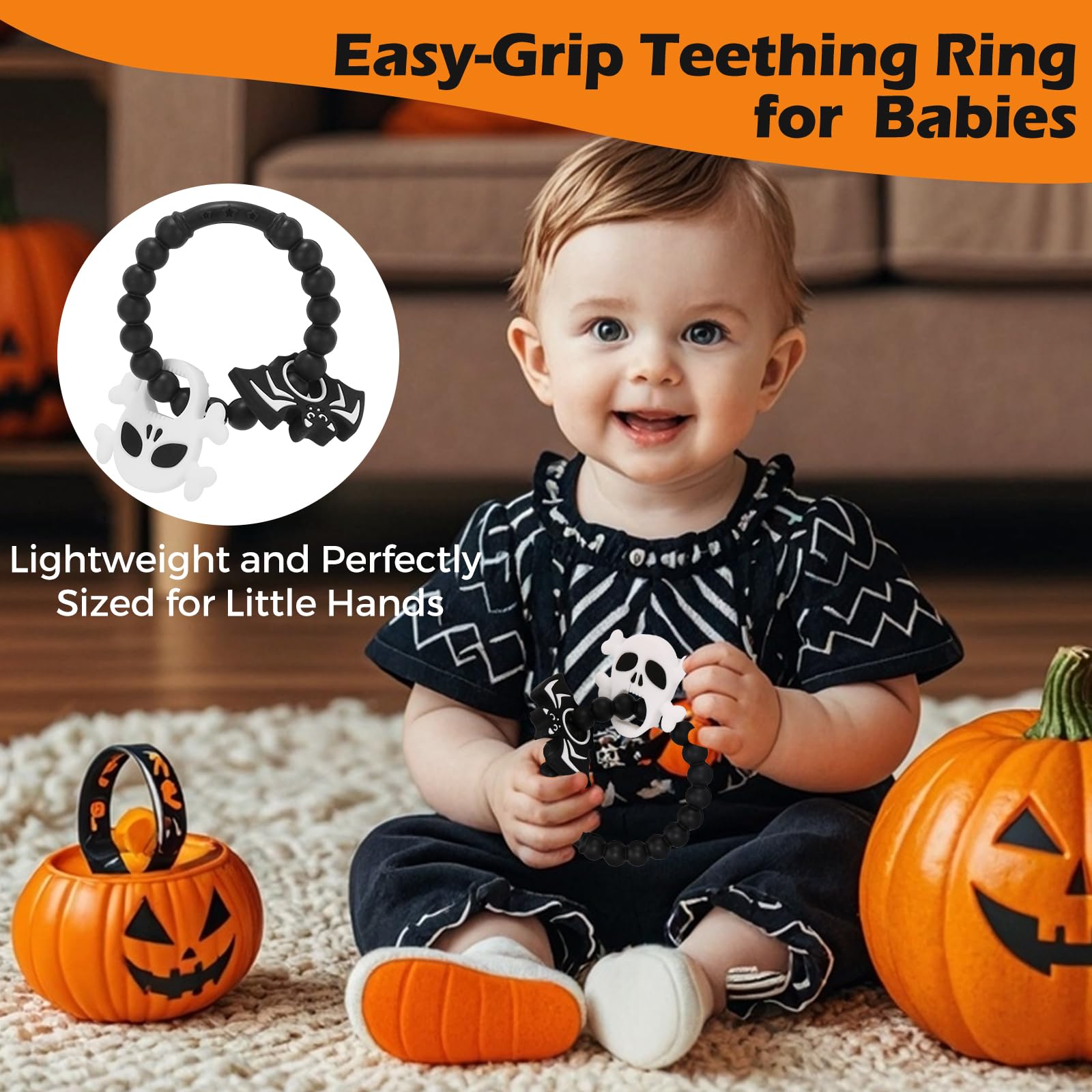 【Perfect Size for Little Hands】Our baby teether ring is designed with your little one in mind. Lightweight and featuring ample openings, it’s easy for babies to grasp and hold, making it an ideal addition to your Halloween baby stuff collection. This teething toy is both fun and functional, serving as the perfect accessory for your baby Halloween.