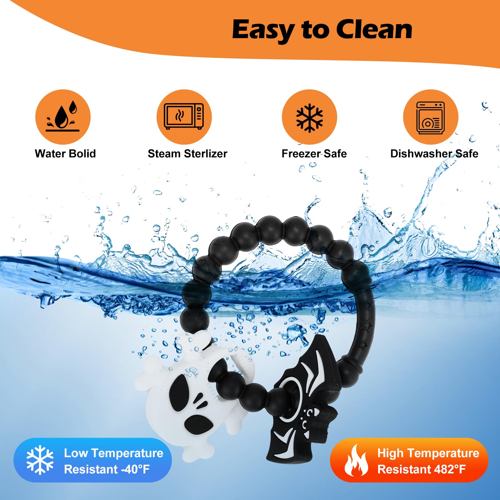 【Easy to Clean and Maintain】Simply rinse the teething ring in warm, soapy water or place in the dishwasher for quick and easy cleaning. You can also store them in the freezer to ensure they are always hygienic and ready to use.