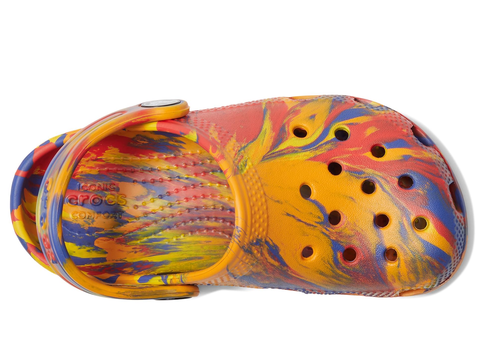 Description All-new marbled effects refresh the iconic clog that started a comfort revolution around the world, charmed kids everywhere and made parents fall in love with their easy-to-wear, easy-to-clean design! Our new marbled Croslite foam creates a colorful effect that is completely unique. While all marbled shoes have the same wavy look, no two shoes are exactly alike. Crocs Classic Clogs feature lightweight Iconic Crocs Comfort and a color for every personality, and remind kids of all ages to go out and play.