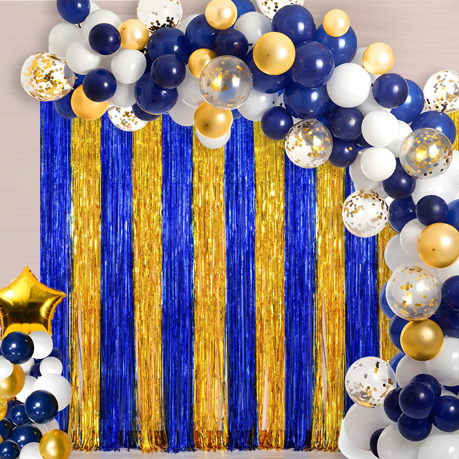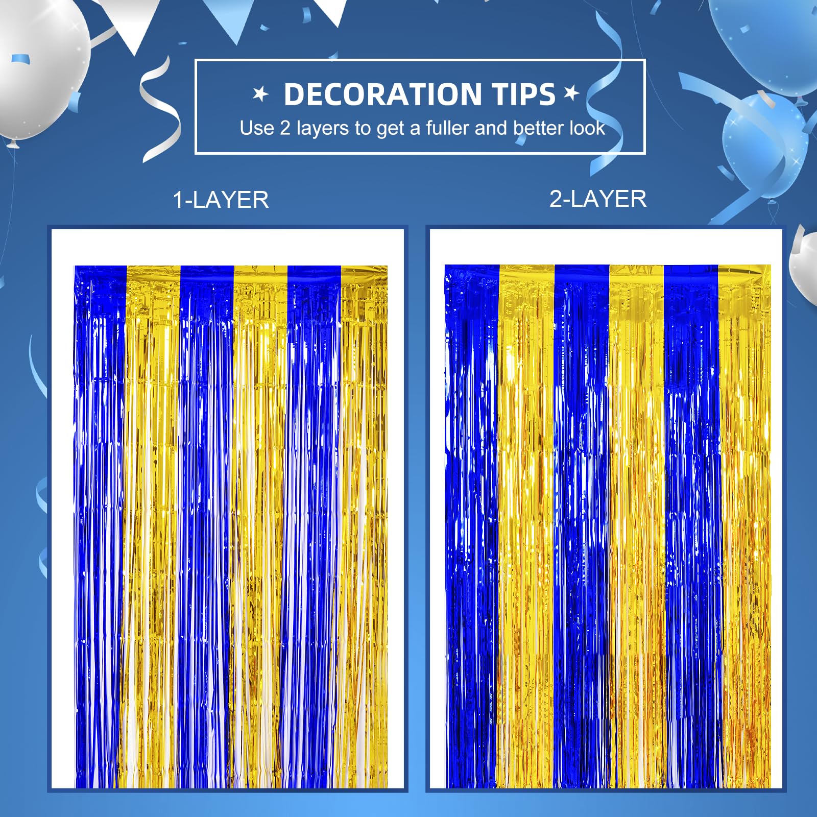 【 TINSEL MATERIAL 】: These blue and gold metallic foil fringe curtains are made of tinsel. They are lightweight and durable fringe curtains. These high-quality fringe curtains are tough, unbreakable, and can be used for a long time.