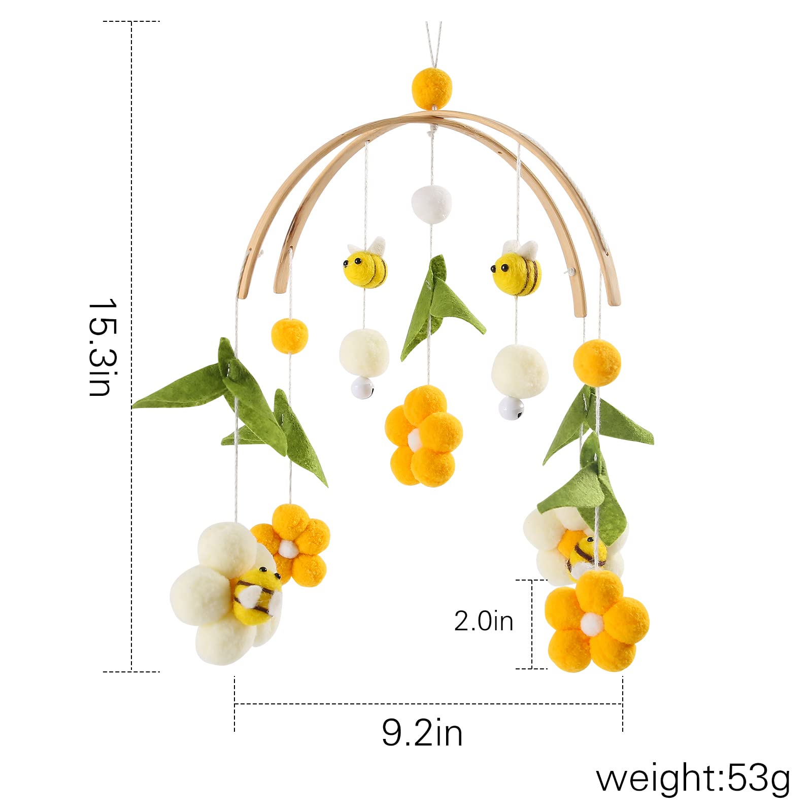 Dolls and Colors: Bright colors can attract children's attention and make children more focused on the crib mobiles to fall asleep faster.These doll figures of honey,flowers and leaves can make children feel close to nature,relax toddler faster and achieve the effect of good sleep.