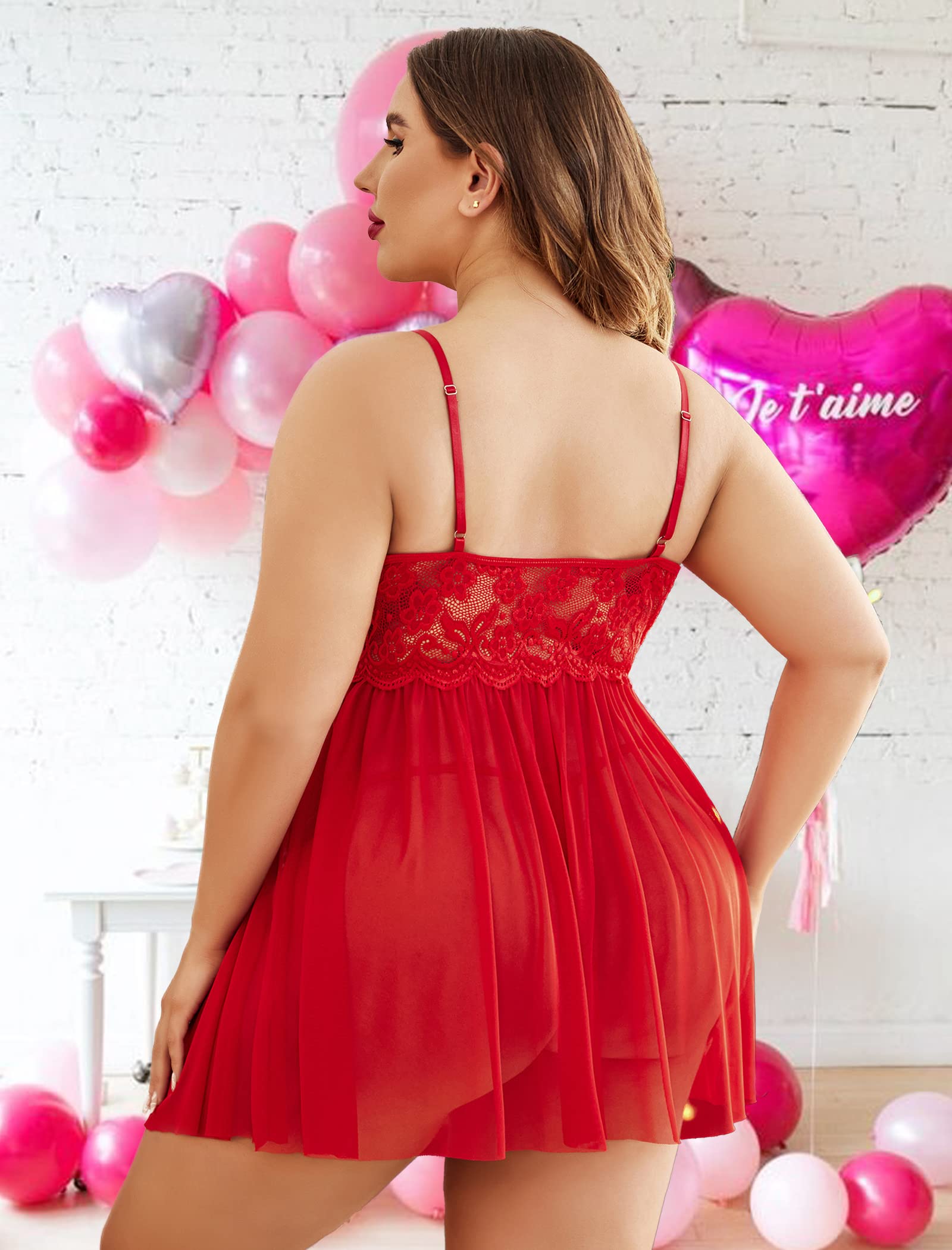 Material:Plus babydoll lingerie is made of high transparent soft lace material, unique style, comfortable and breathable.