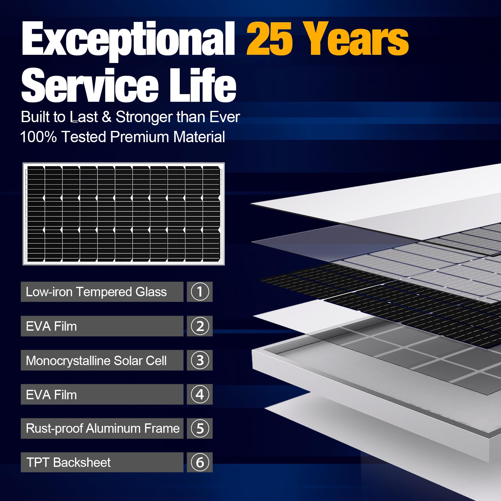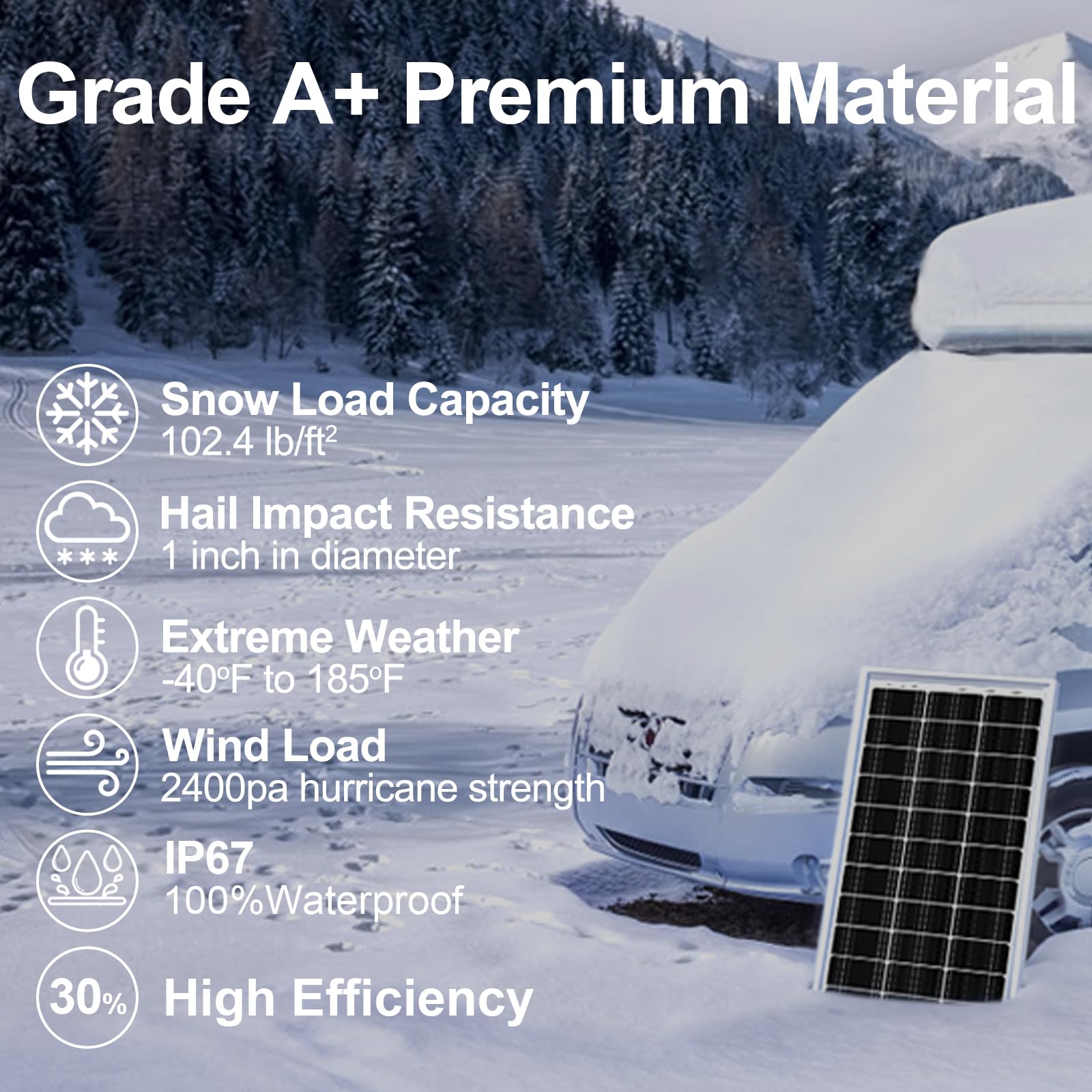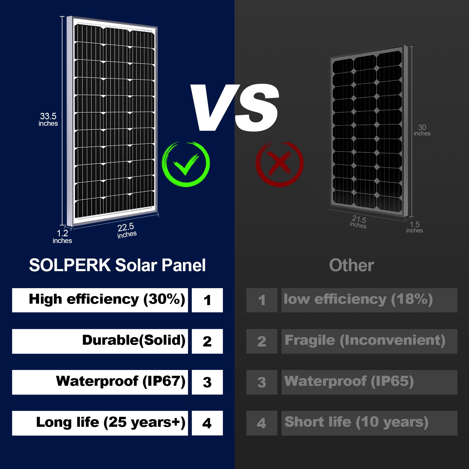 【Various of Application】 SOLPERK Solar Panel own monocrystalline A+ solar cell. Its efficiency is an industry-best 30%, generating 400 watt-hours of power per day in four hours of full sunlight.Suitable for RV, sheds, caravans, motorhomes, boats, trailers, etc