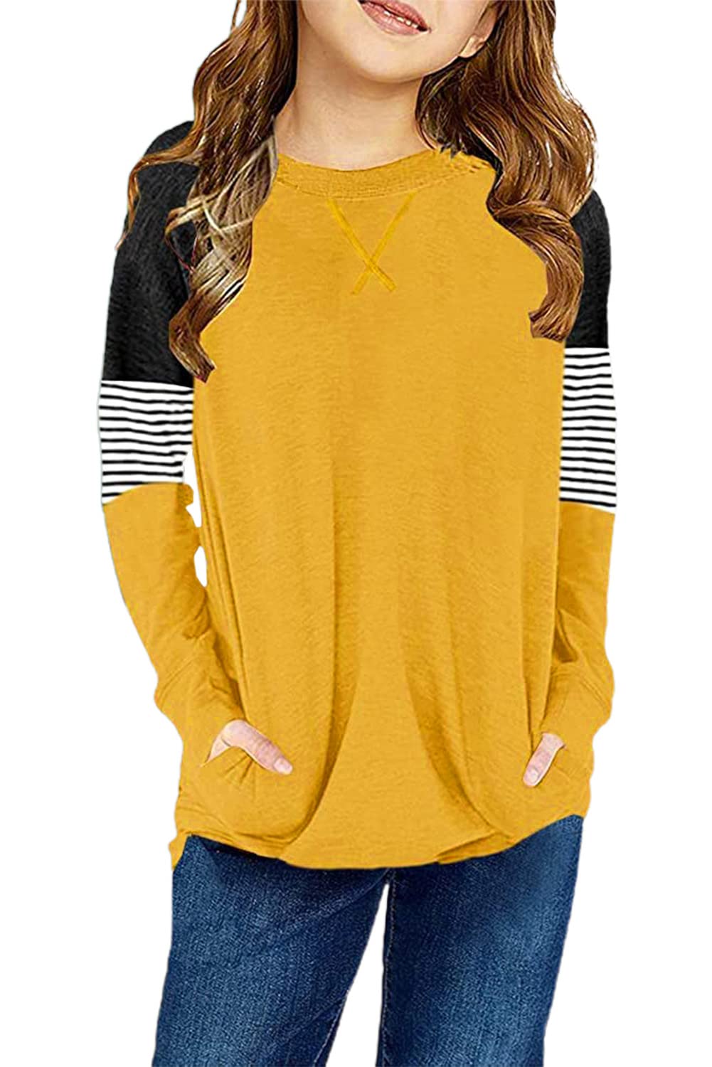 ♥ [Style]:The girls crew neck top with the regular fit can better suit your girl and modify your girl's shape.The top with side pockets is stylish and special for girls. Easy to pair with leggings and skirts
