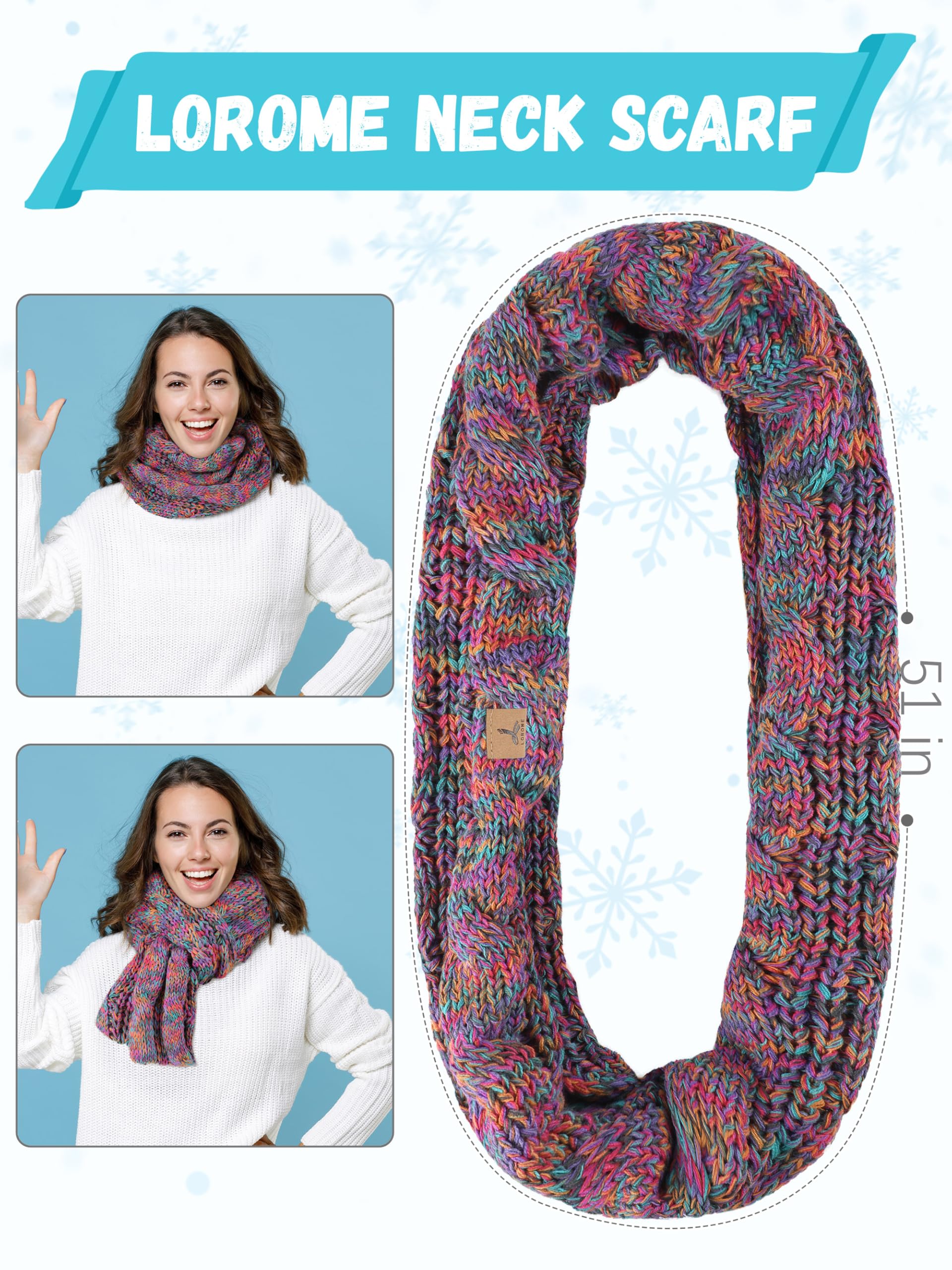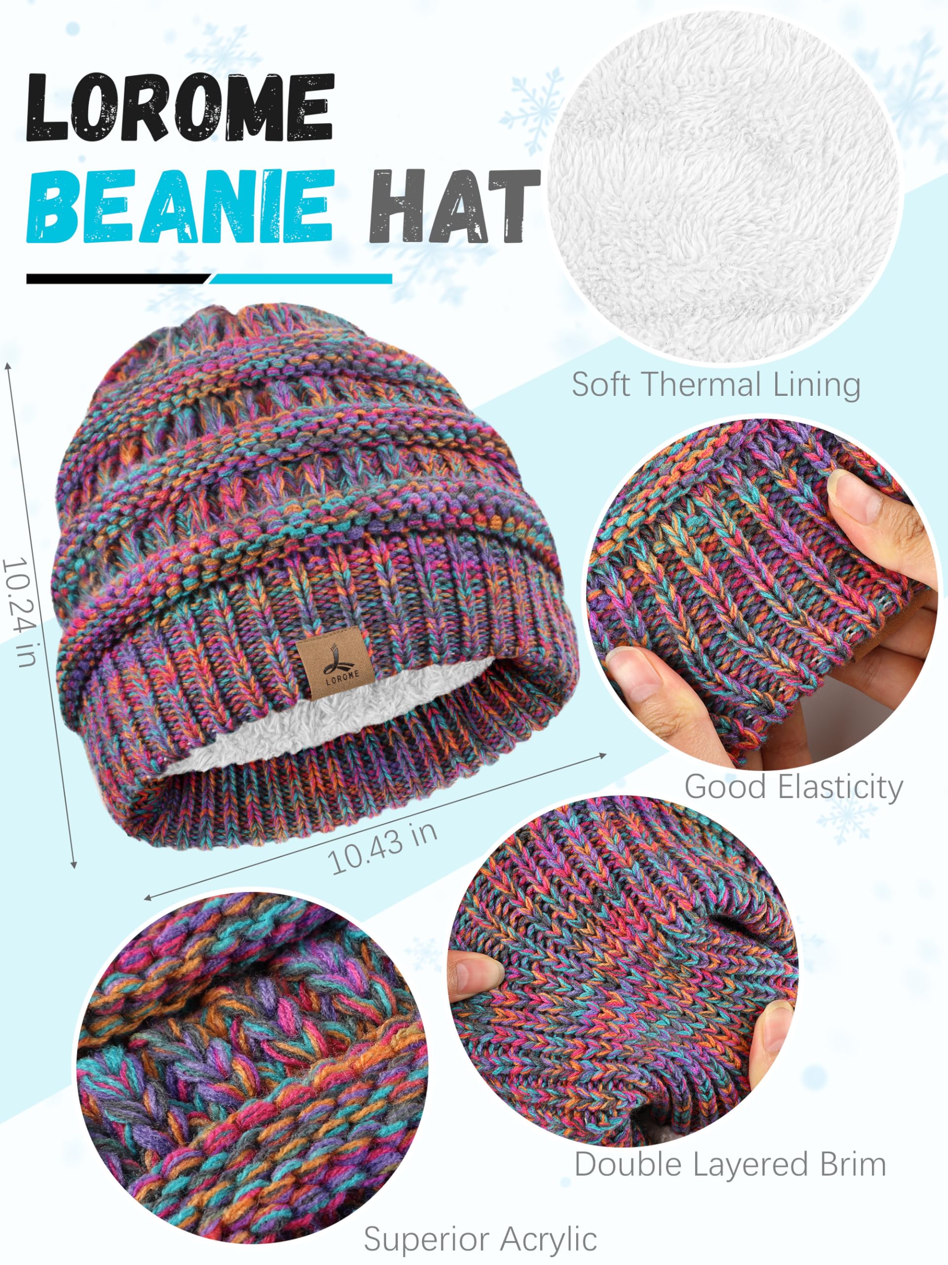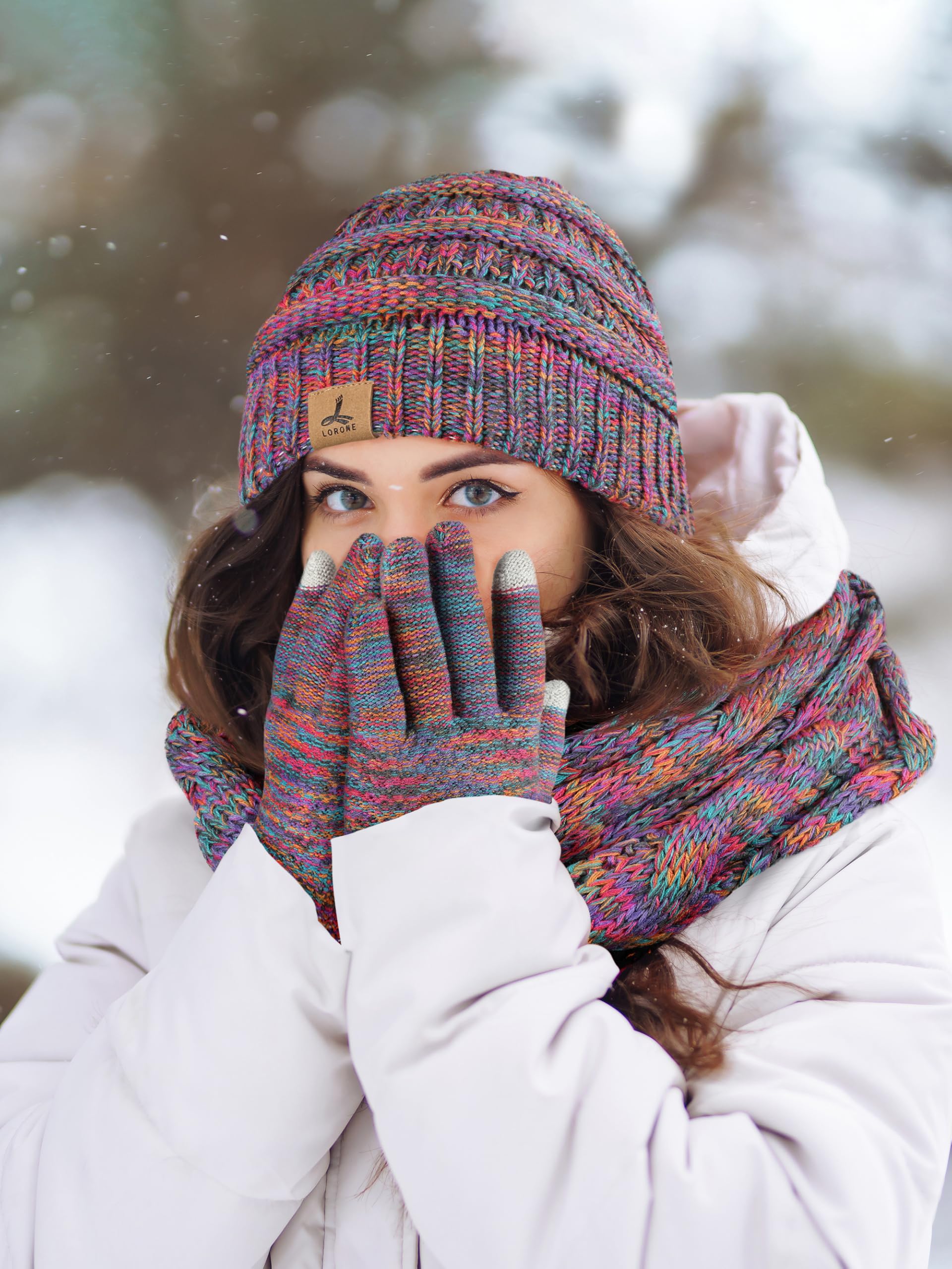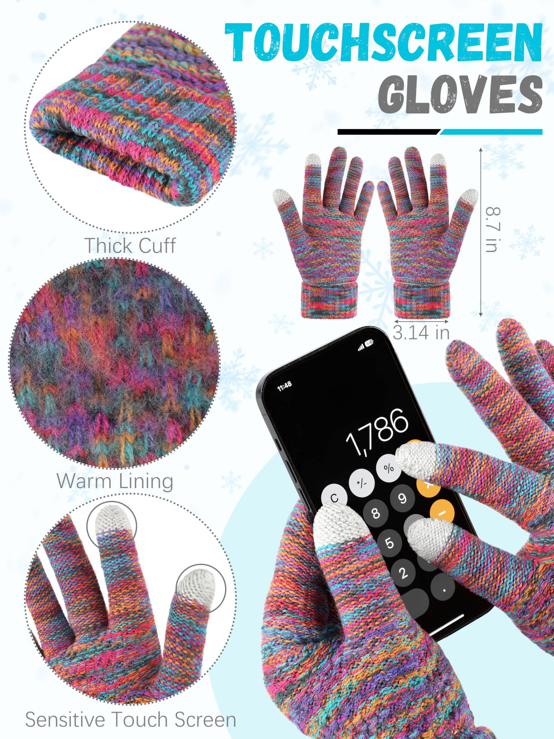 What You will Get --You will receive 1 set rainbow winter accessories set which includes 1 pcs knit padded winter hat, 1 pcs knit striped neck scarf, and 1 pair of touchscreen winter gloves (8.3 IN).
