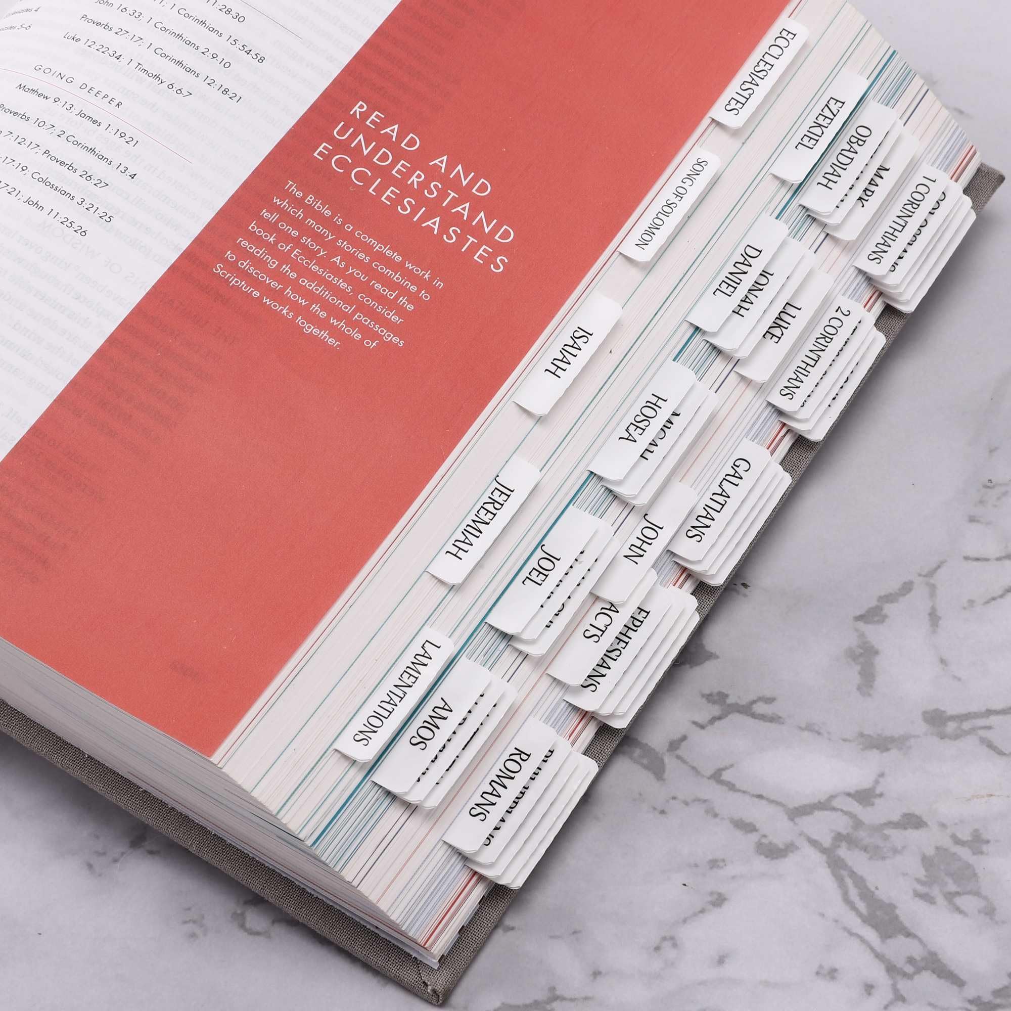 [Durable Laminated Tabs] The bible tabs are laminated with matte film, which is water-proof, tear-proof and durable.