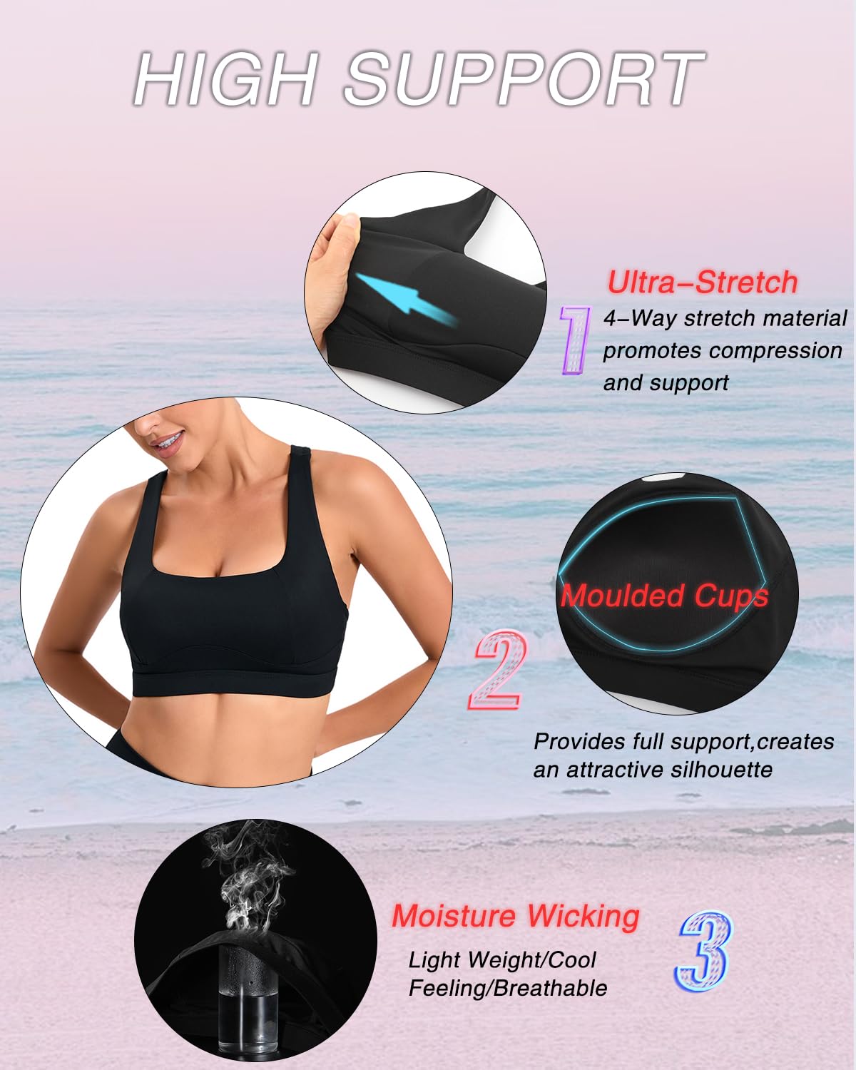 ✅ 【SWEAT OUT IN STYLE! 】: Made from a flexible four-way stretch fabric that supports your body as you move. Enjoy the freedom of movement as the open back styles aim to keep you comfy and cool while you bring on the heat! Running sports bras for women with wide waist band for that support we all need!