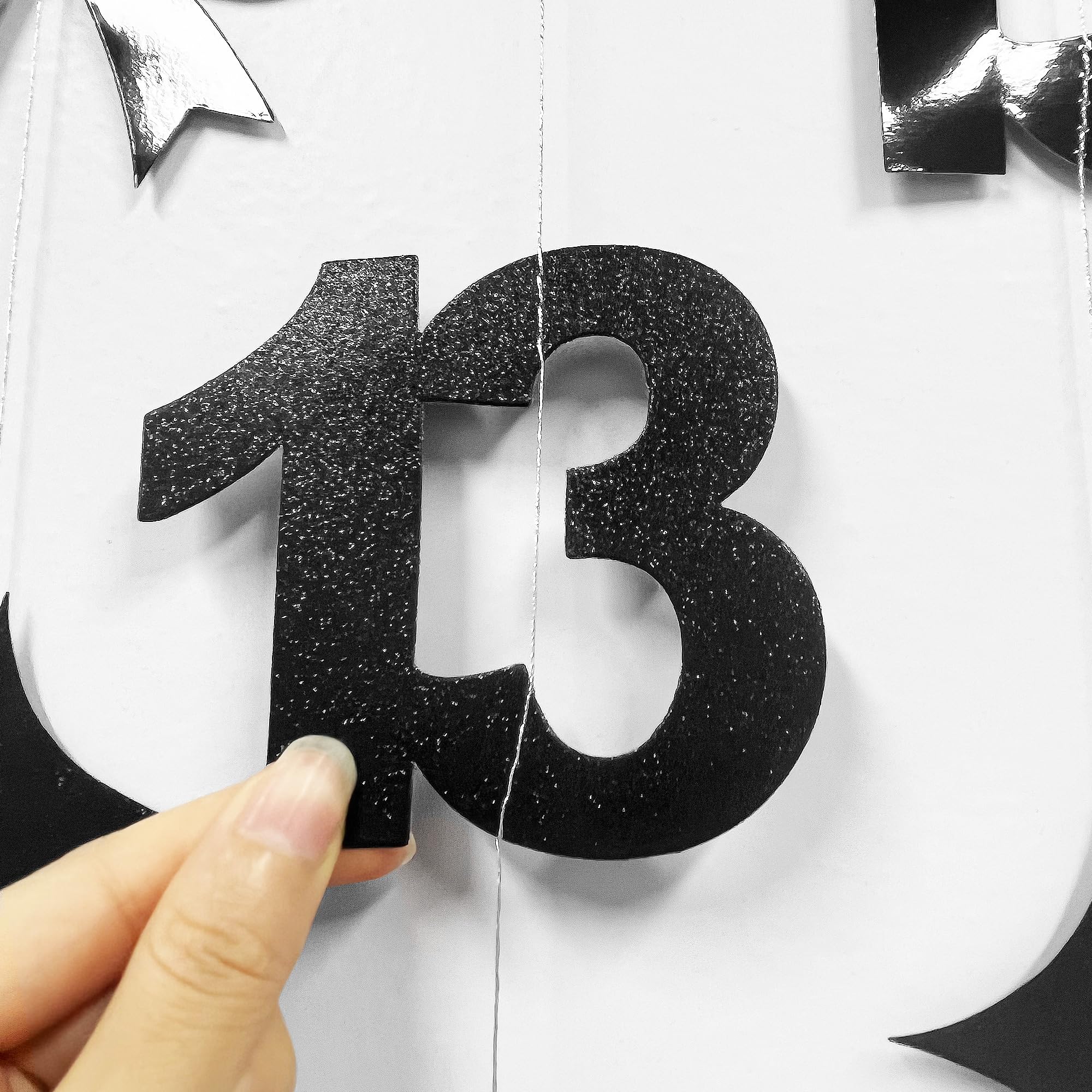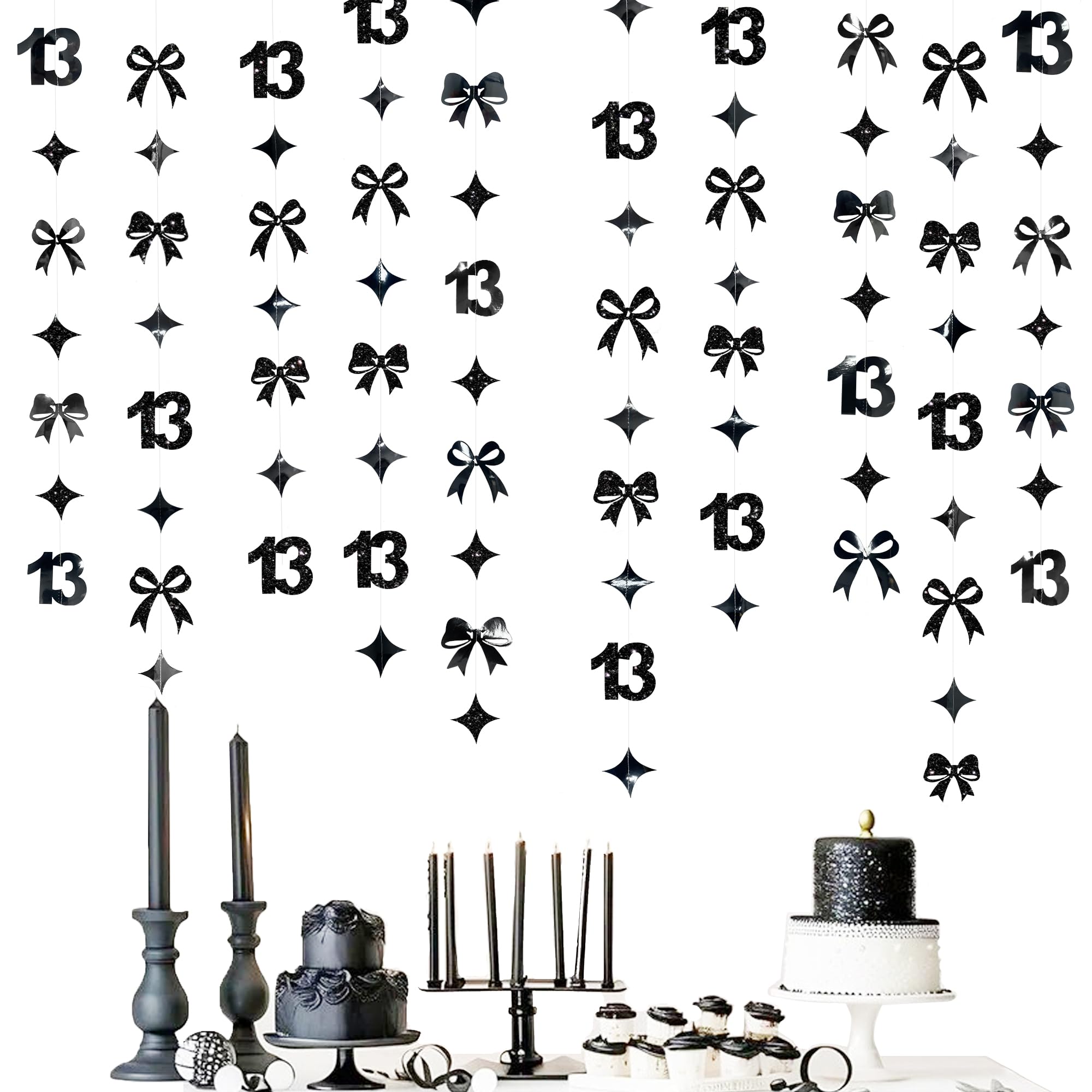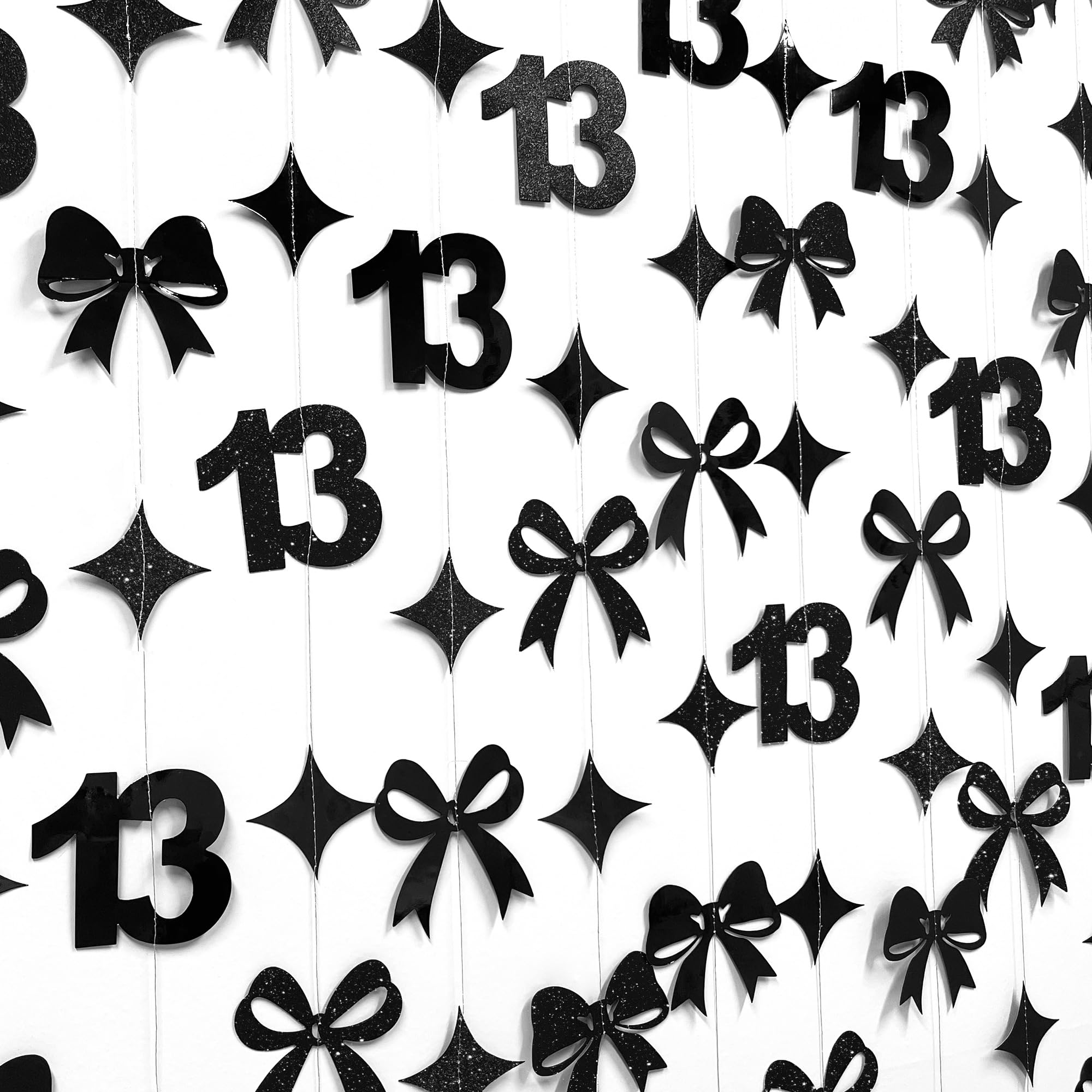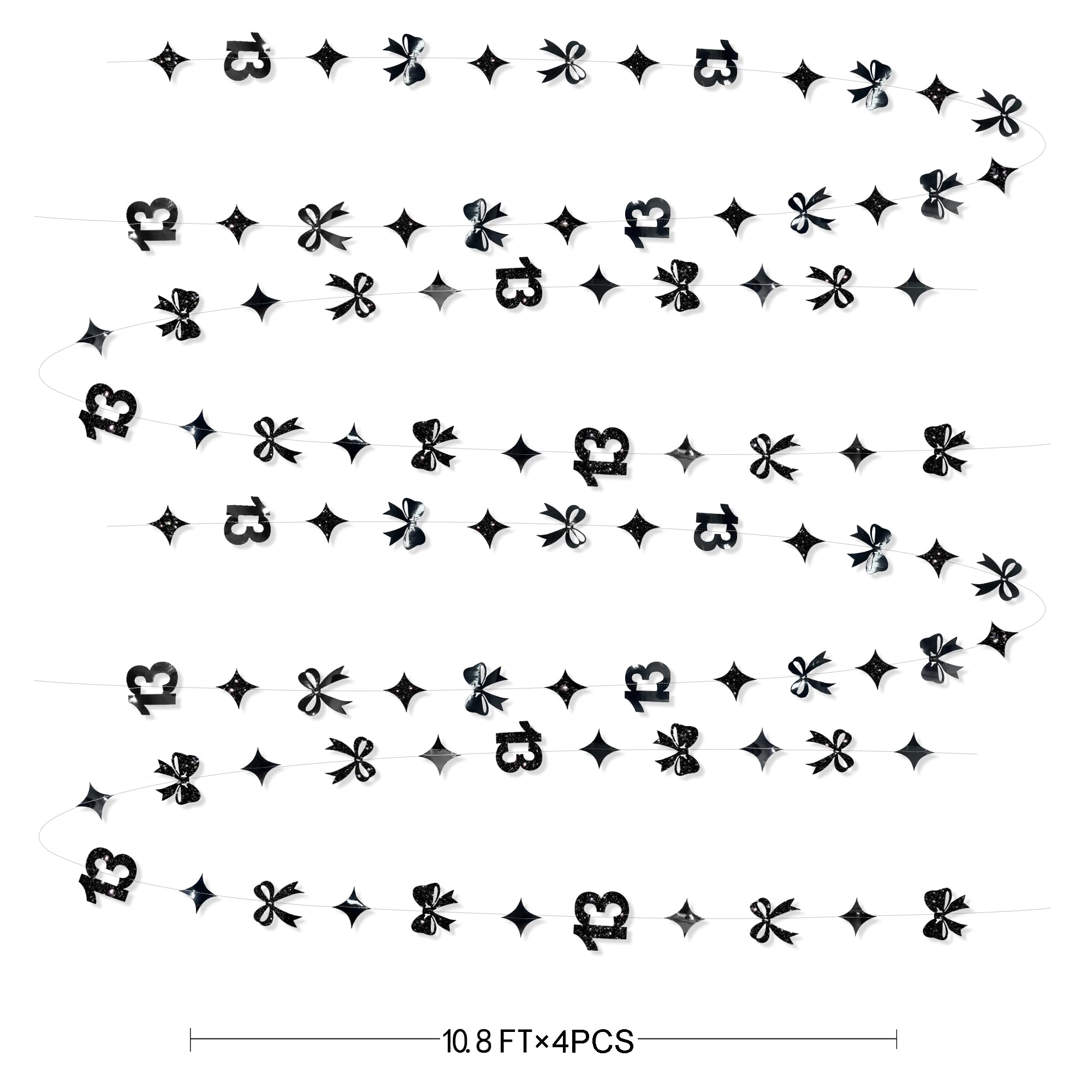 👍 Package includes - 4 strings of 10.8 feet/3.3 meters black number 13 and conquette bow with sparkling twinkle star and circle dots garlands , totally is 43.2 feet/13.2 meters