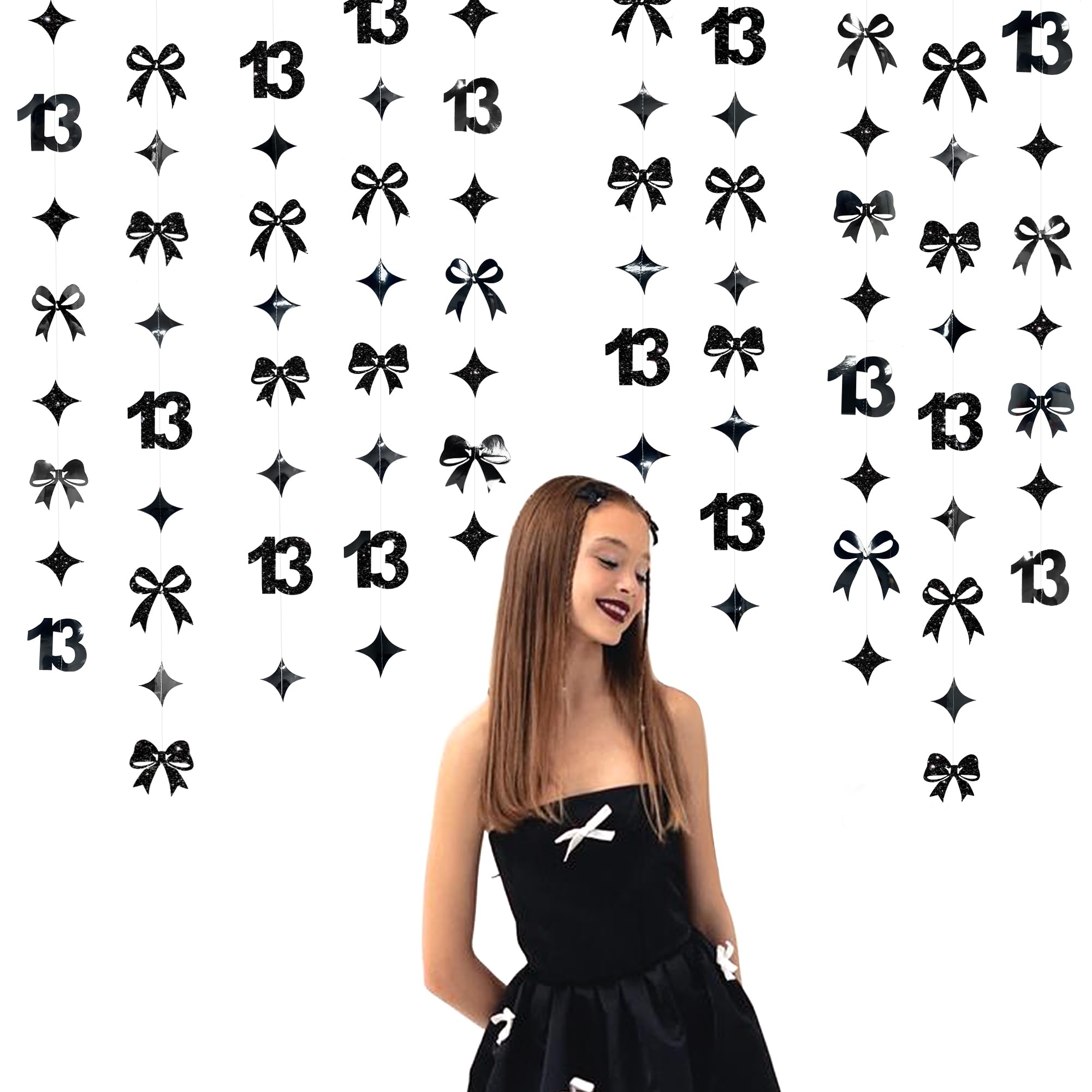 Our Black Conquette Bow 13th Happy Birthday Party Decorations Kit includes: ✓ 4 Pcs metallic star circle dot garland including number 13 and conquette bowWe have the perfect decoration party supplies set for the occassion: It’s perfect for: ► 13 birthday decorations ►Happy 13th birthday decorations ► 13th birthday decorations for girls ► 13th birthday decorations for boys ► Official teenager birthday decorations ► 13th bow birthday party decorations ► Omg ur a teenager birthday decorations ► Cheers to 13 years party decorations ► Happy 13th anniversary ► Bow Parties! Our black bow 13th birthday party decorations is ready for its close up - we can't wait to see what memories you create! Have fun!