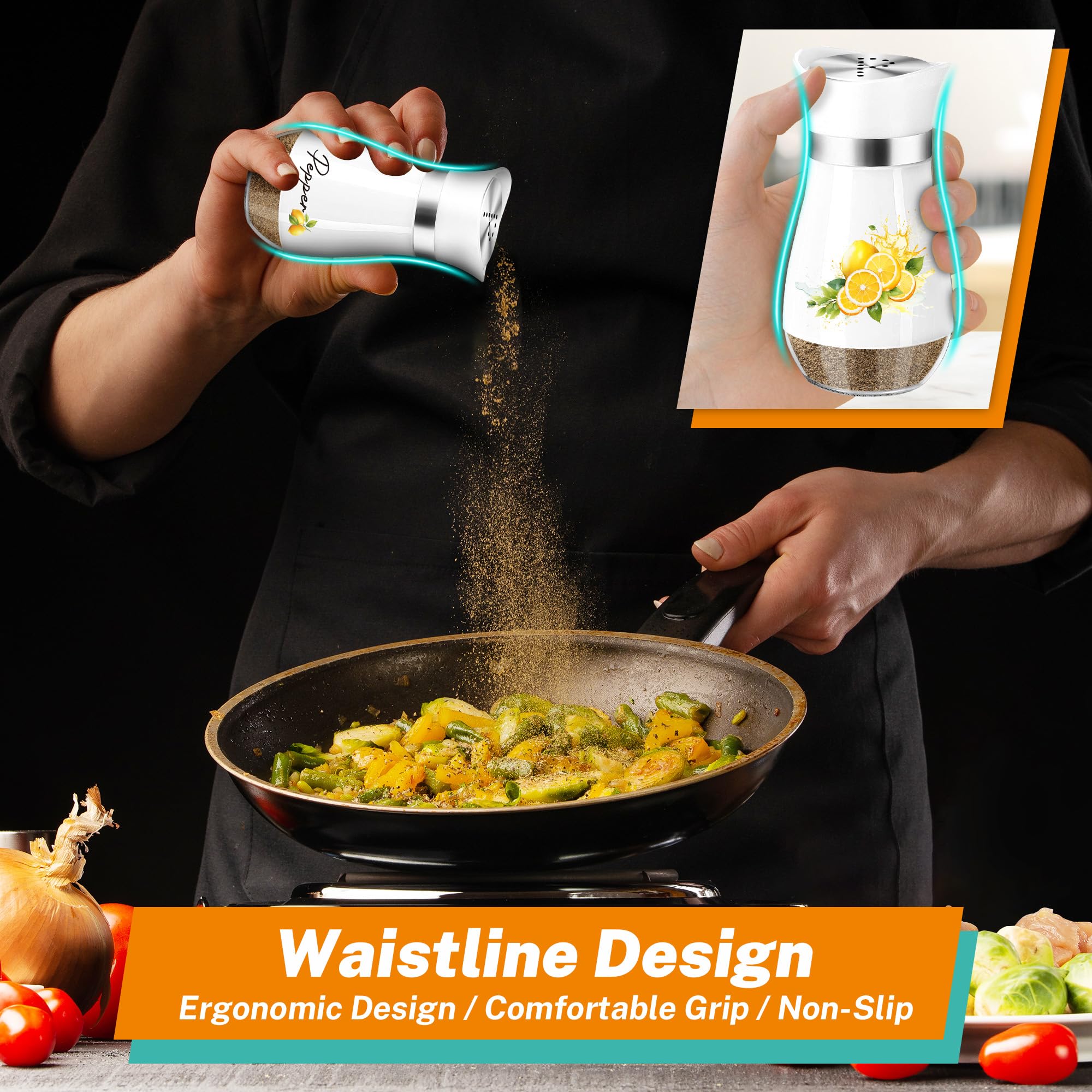 No Over-Seasoning:There are 11 small holes evenly distributed on the Stainless Steel Lid, you only need to shake 1-2 times at most to get the salt and pepper flowing just right, saving time and not over-seasoning. You and your family can enjoy the pleasuring of cooking